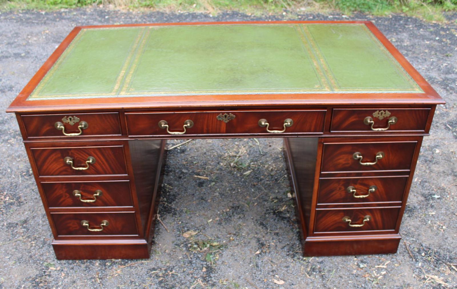 Good 1960s Mahogany Partners Desk with Green Leather on Top