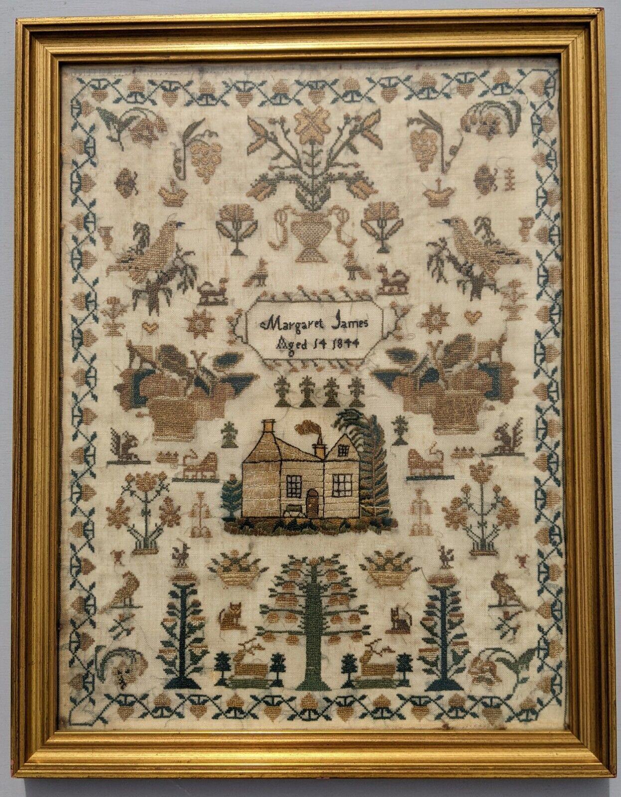 Good 19th Century Sampler Embroidery Margaret James Aged 14 1844