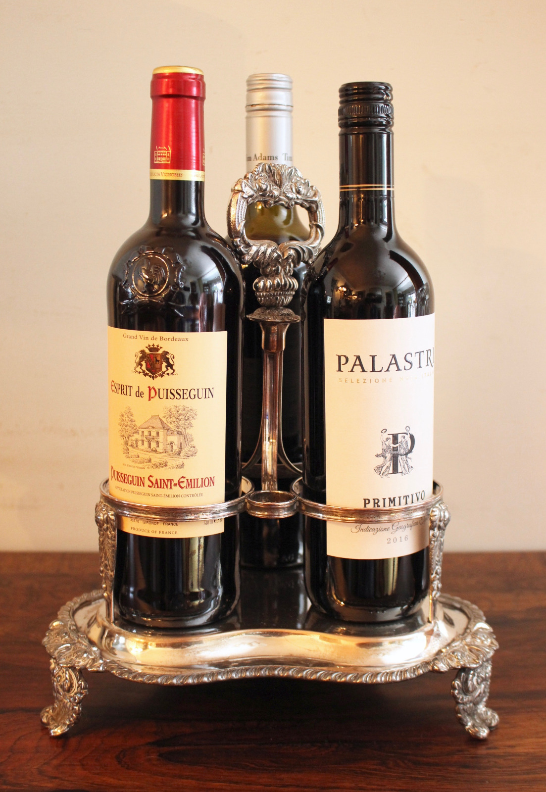 Good Antique 19th Century Victorian Silver On Copper Trefoil Form Bottle Caddy