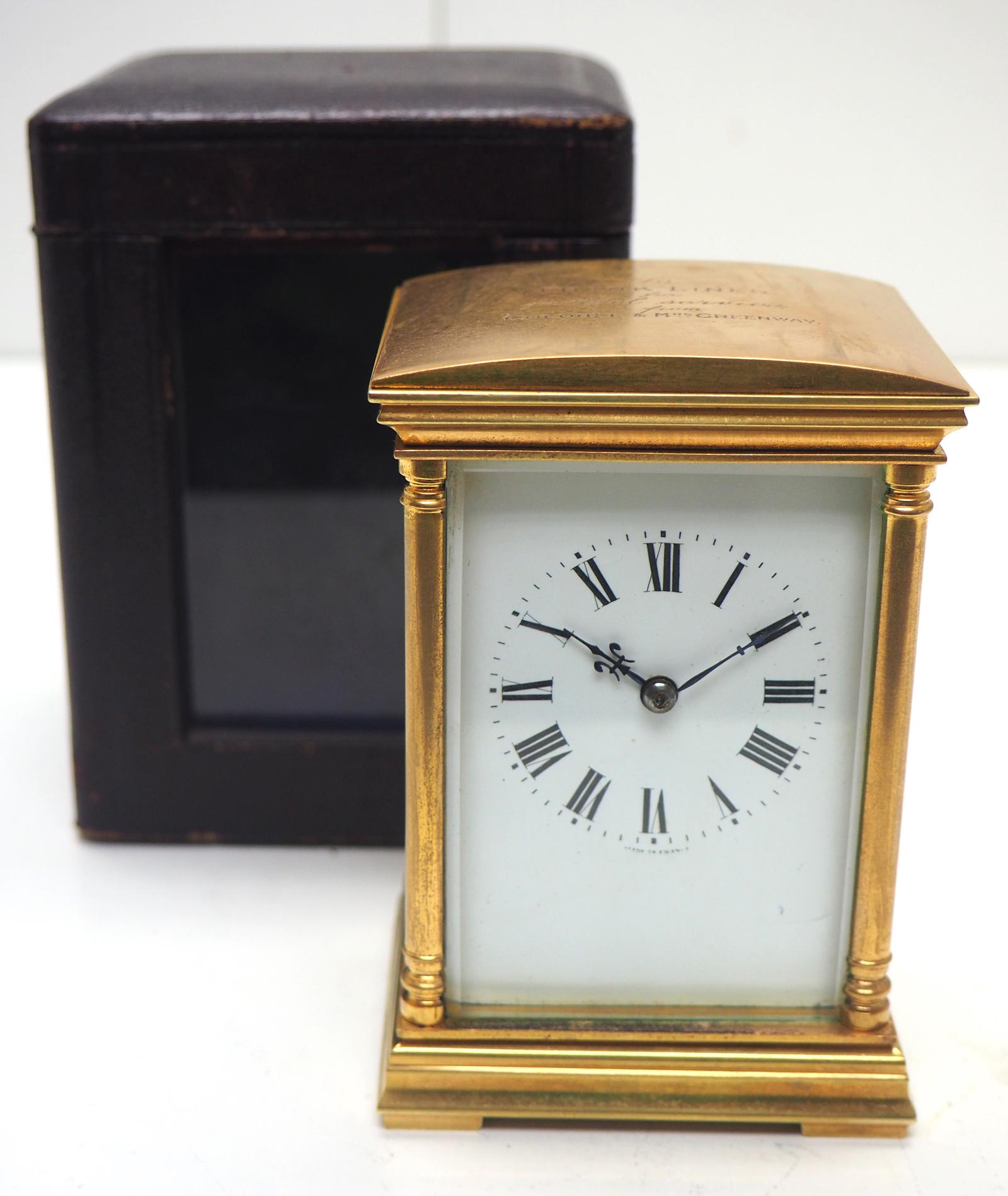 Good Antique French 8-day Carriage Clock Classic Interesting Design with Outer Leather Case