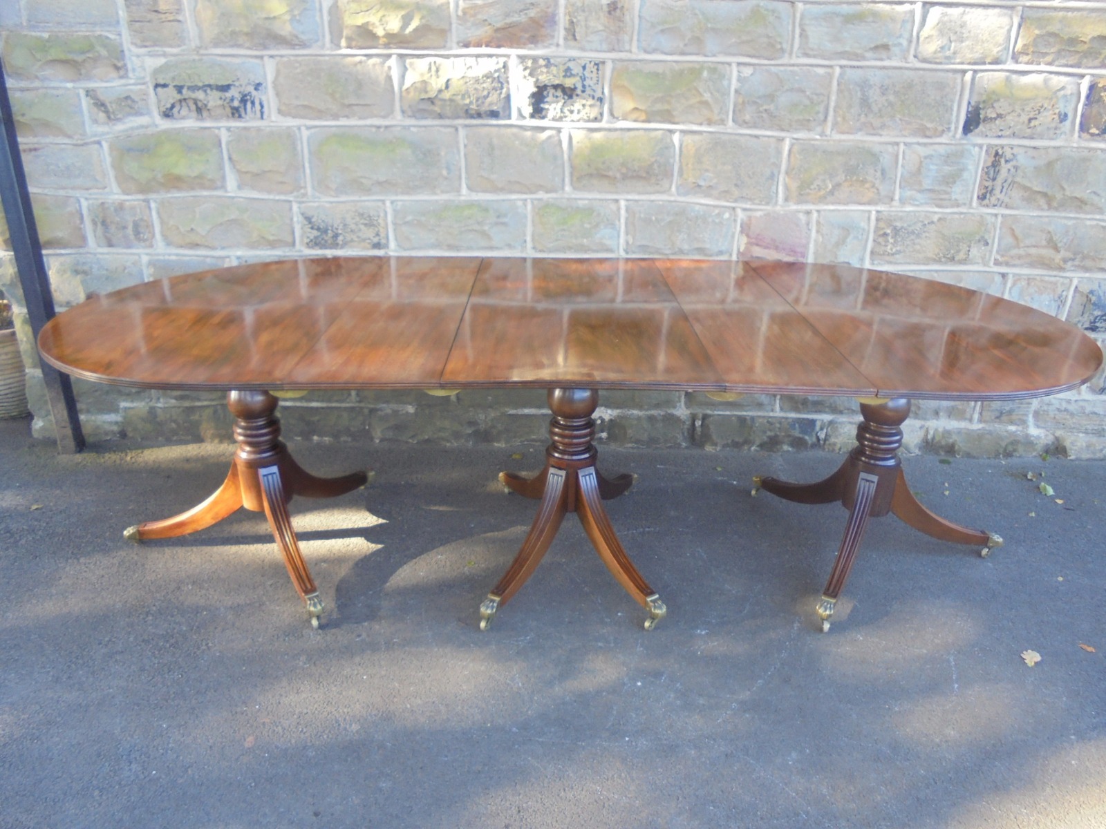 Good Antique Mahogany Triple Pillar Extending Dining Table