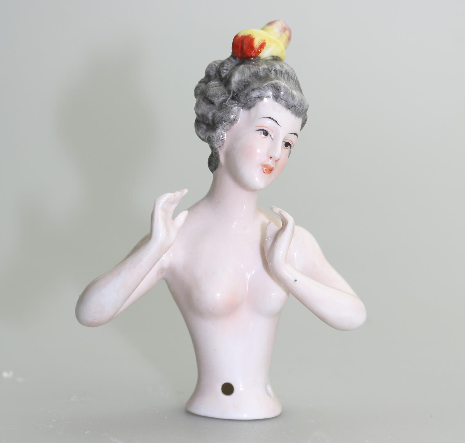 Good Antique Porcelain Girl Half Doll c.1920