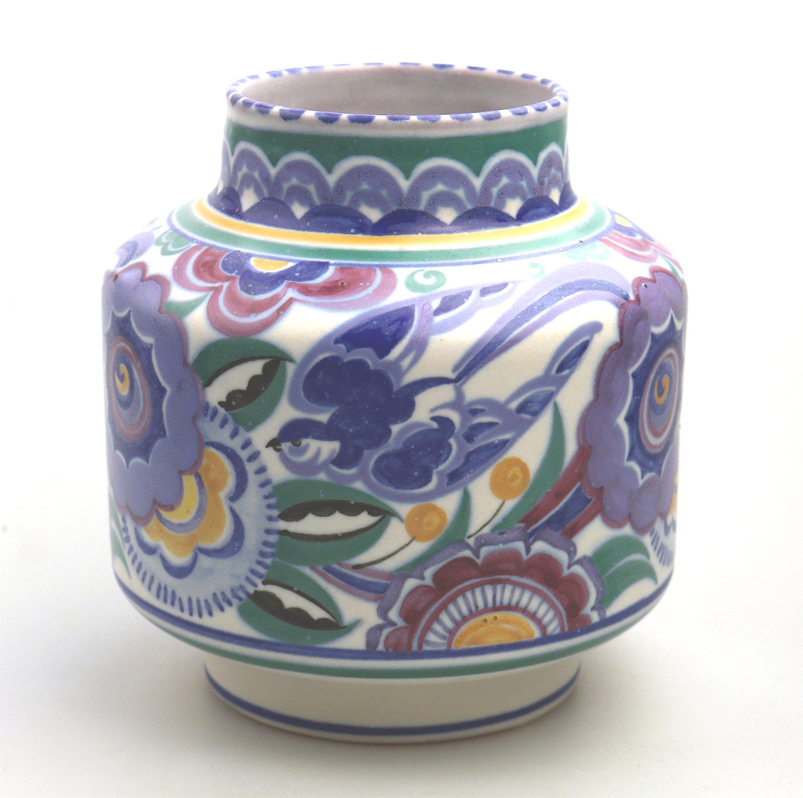 Good Art Deco Carter Stabler Adams Poole Pottery Bluebird Vase c.1930