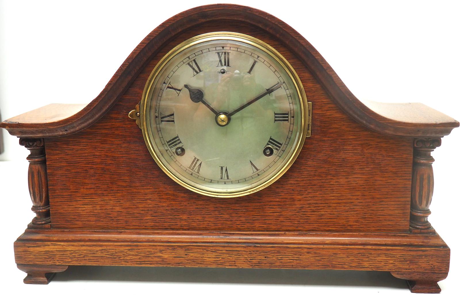 Good Art Deco Honey Oak Mantel Clock – Striking 8-day Arched Top Mantle Clock