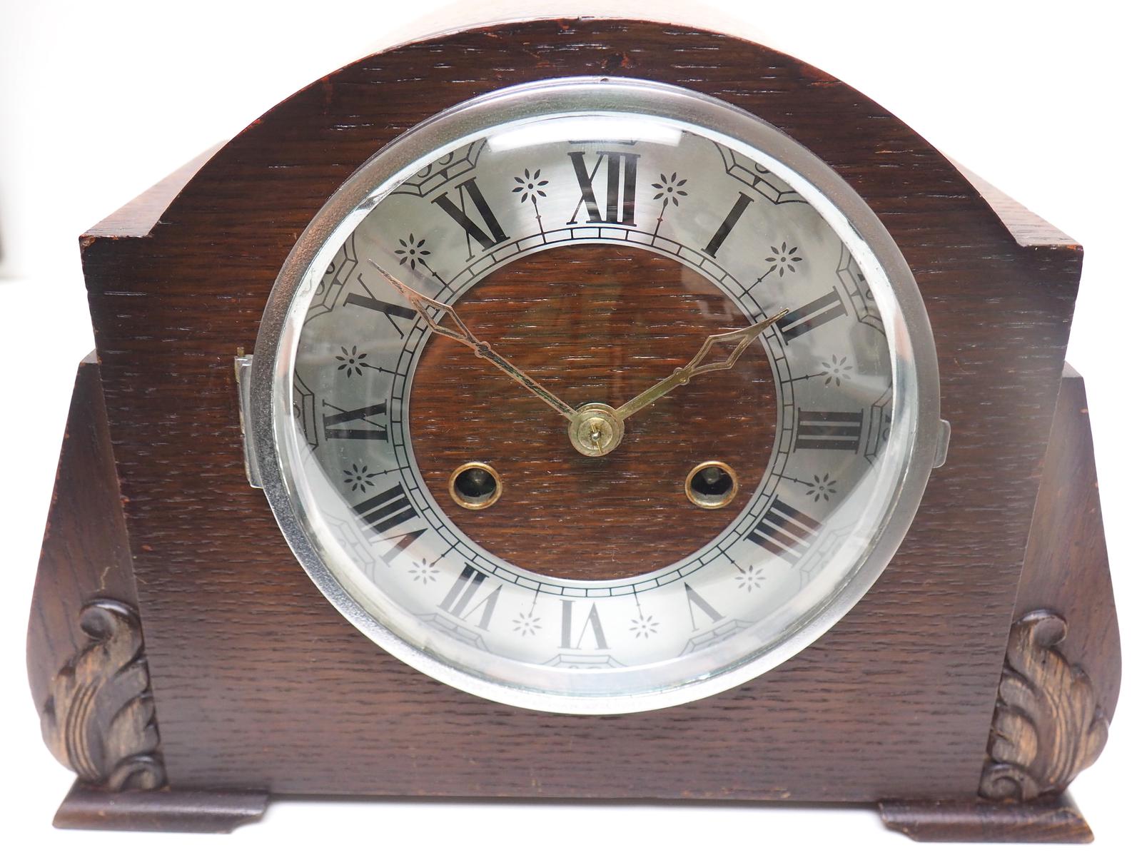 Good Art Deco Oak Mantel Clock – Striking 8-day Arched Top Mantle Clock
