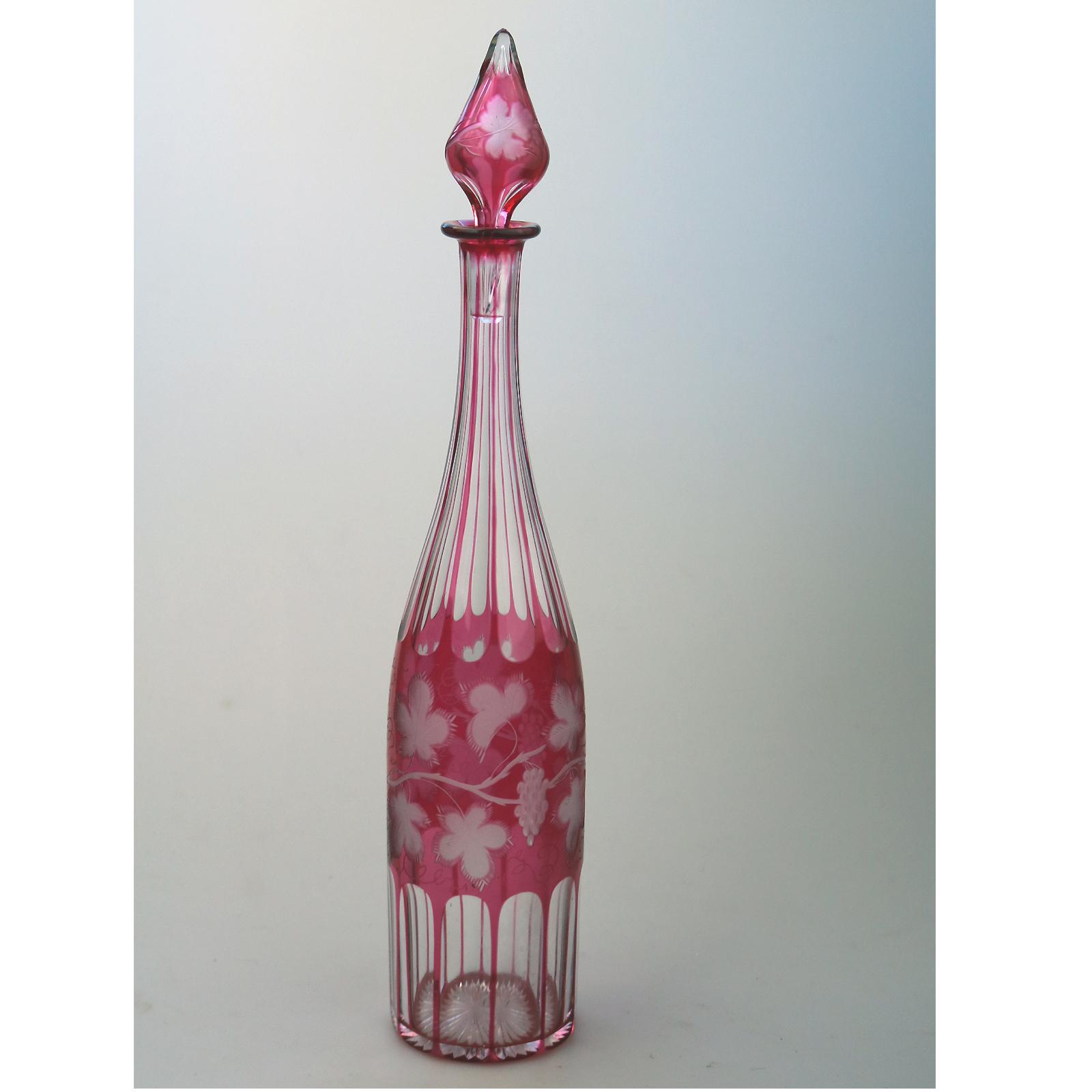 Good Bohemian Cranberry Flash Glass Wheel Etched Decanter