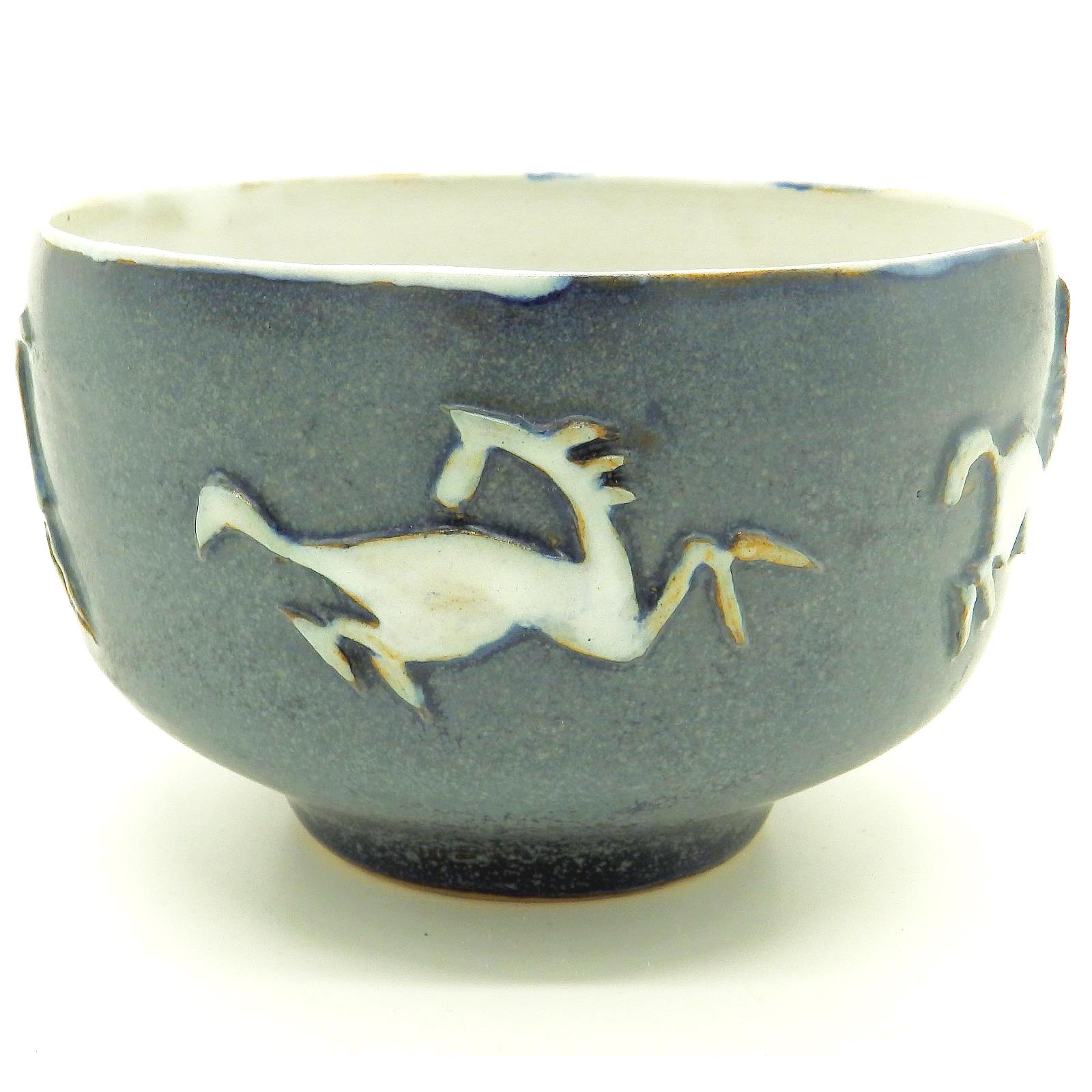 Good British Art Studio Pottery Bowl with Stylised Galloping Horses 20th Century