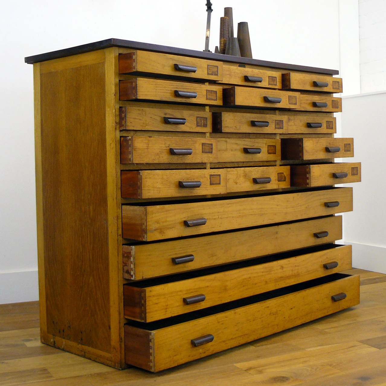 Good British Vintage 1940s Oak 19 Drawer Science Lab Cabinet Cupboard