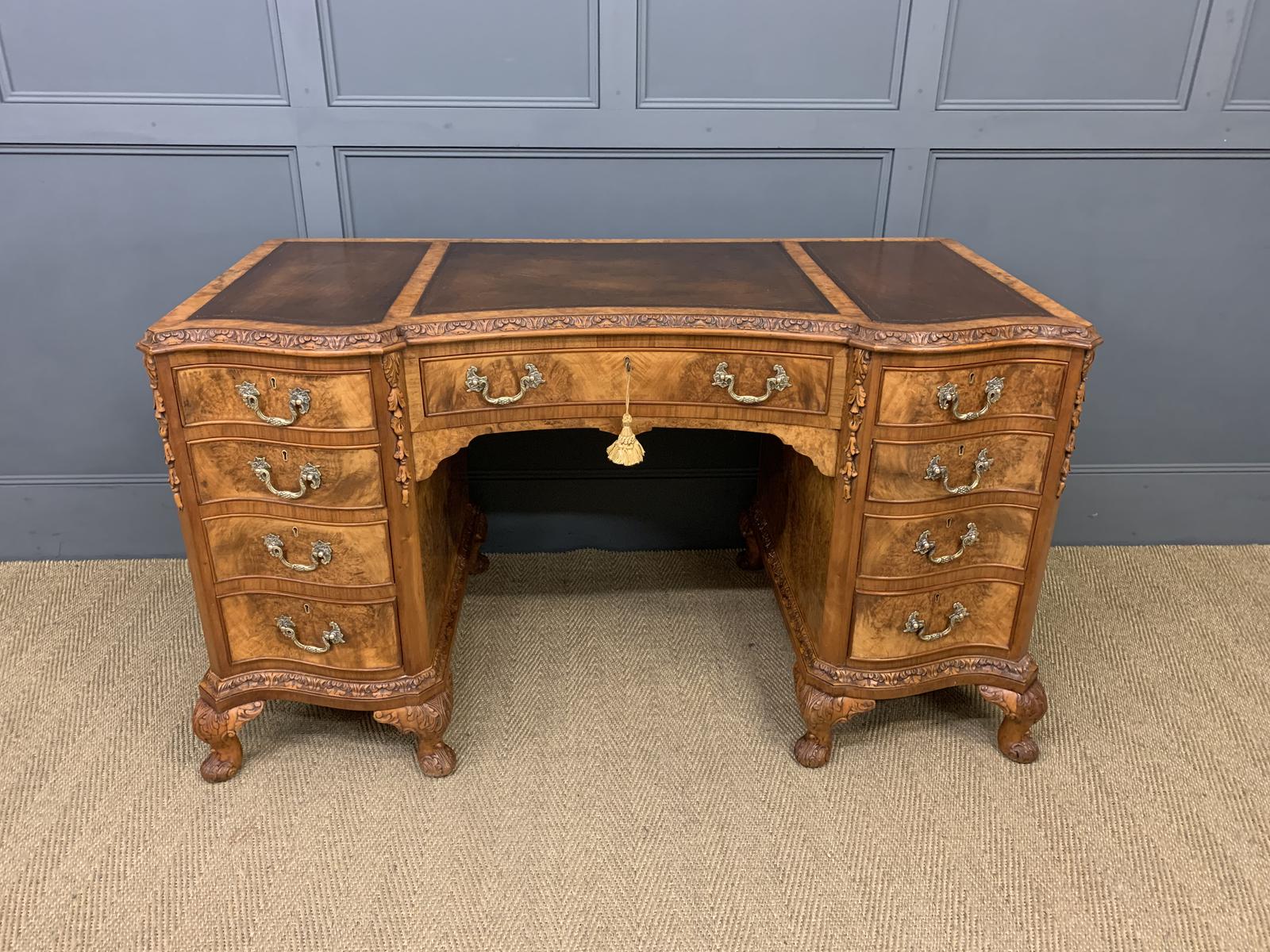 Good Burr Walnut Pedestal Desk c.1920