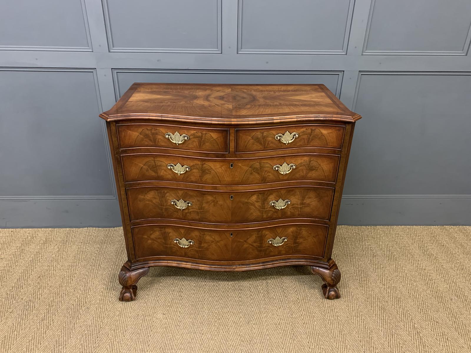 Good Burr Walnut Serpentine Fronted Chest of Drawers