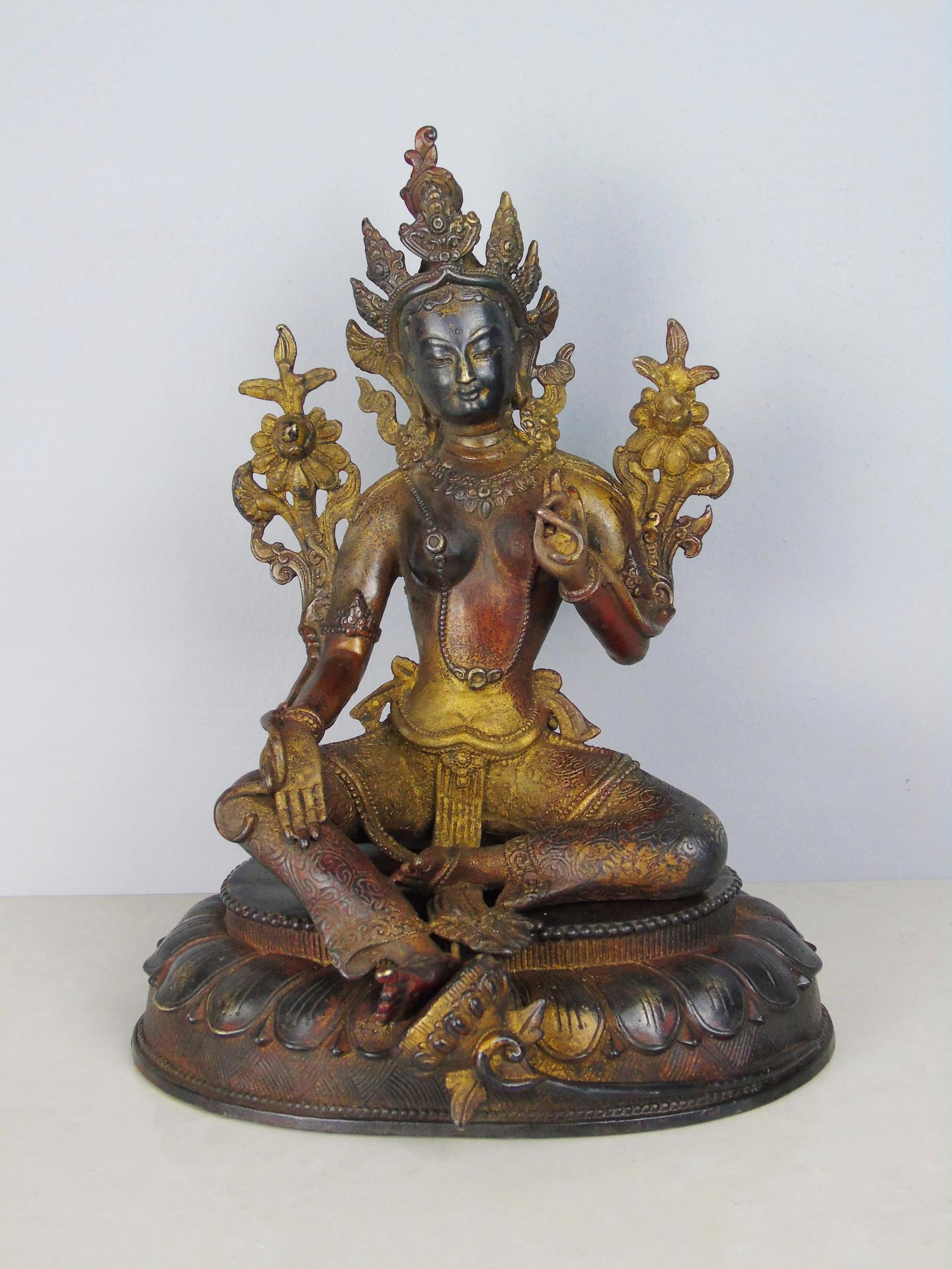 Good Early 19th Century Bronze of Green Tara Buddha Figure (1 of 10)