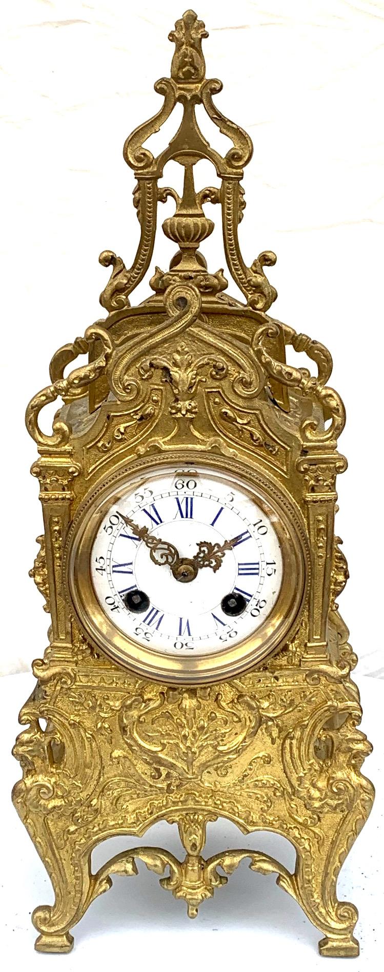 Good French Ormolu Embosed Floral Case Striking 8-day Mantle Clock