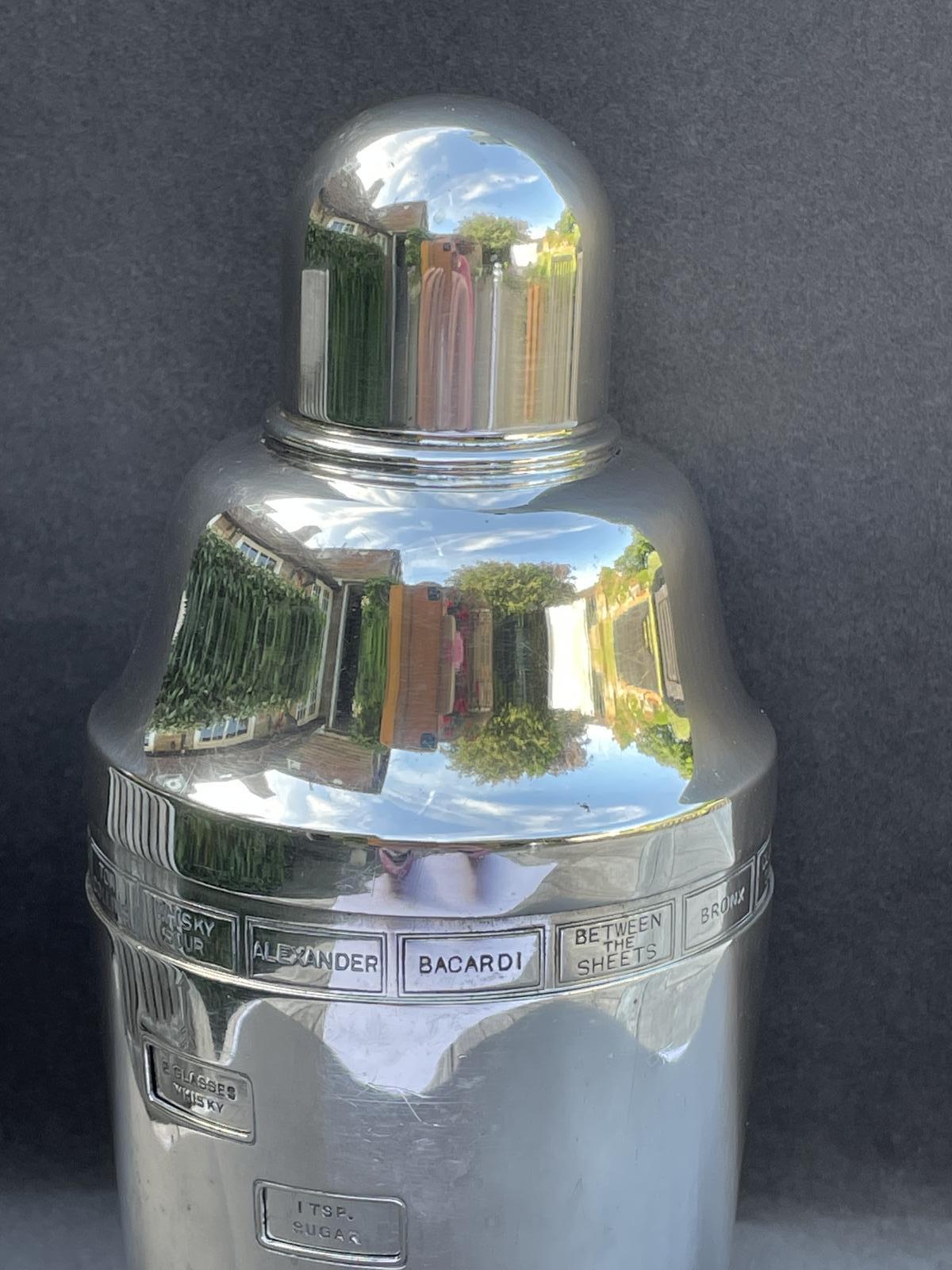 Good Genuine Art Deco Novelty "Dial a Cocktail" Revolving Recipe Cocktail Shaker in Great Condition