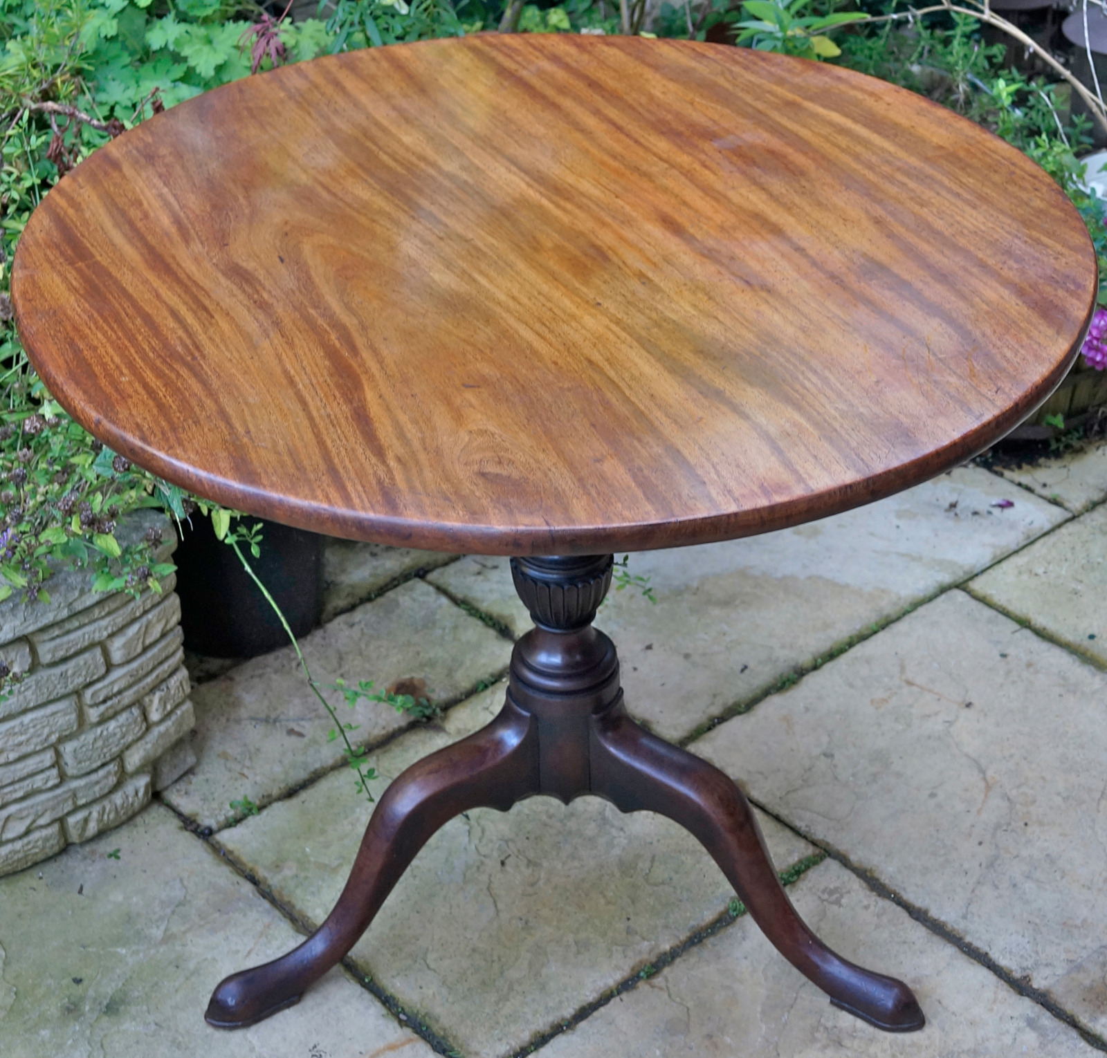 Good Georgian Mahogany Tripod Table with Finely Carved Fluted Vase Column