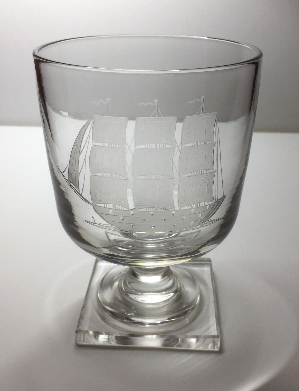 Good, Heavy Late Georgian Rummer, Engraved with a Warship Under Sail, circa 1825