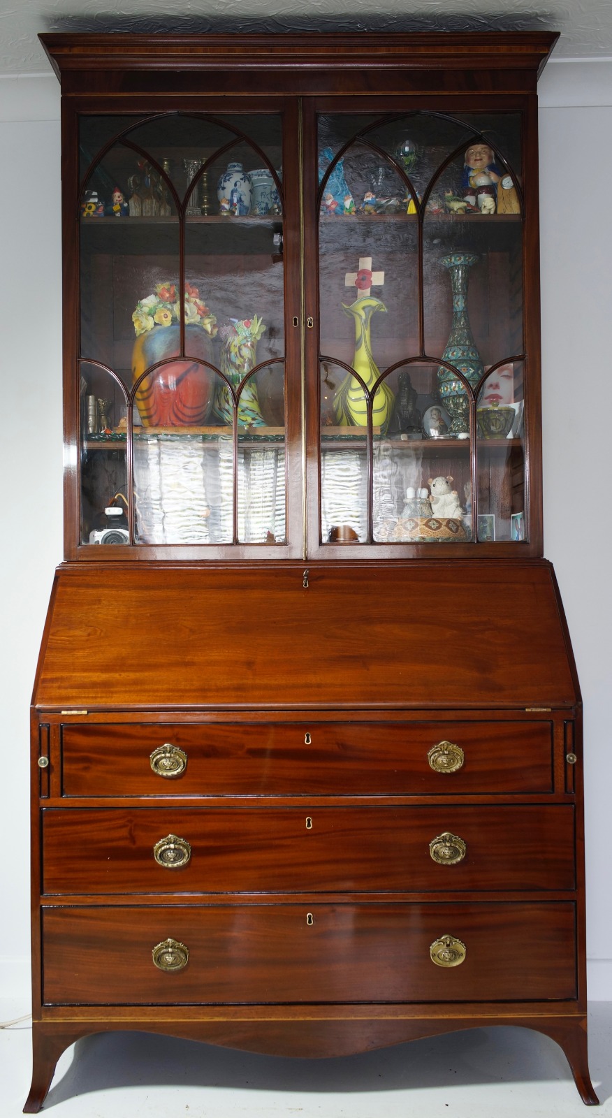 Good Impressive Georgian Period Mahogany Inlaid Bureau Bookcase C.1820