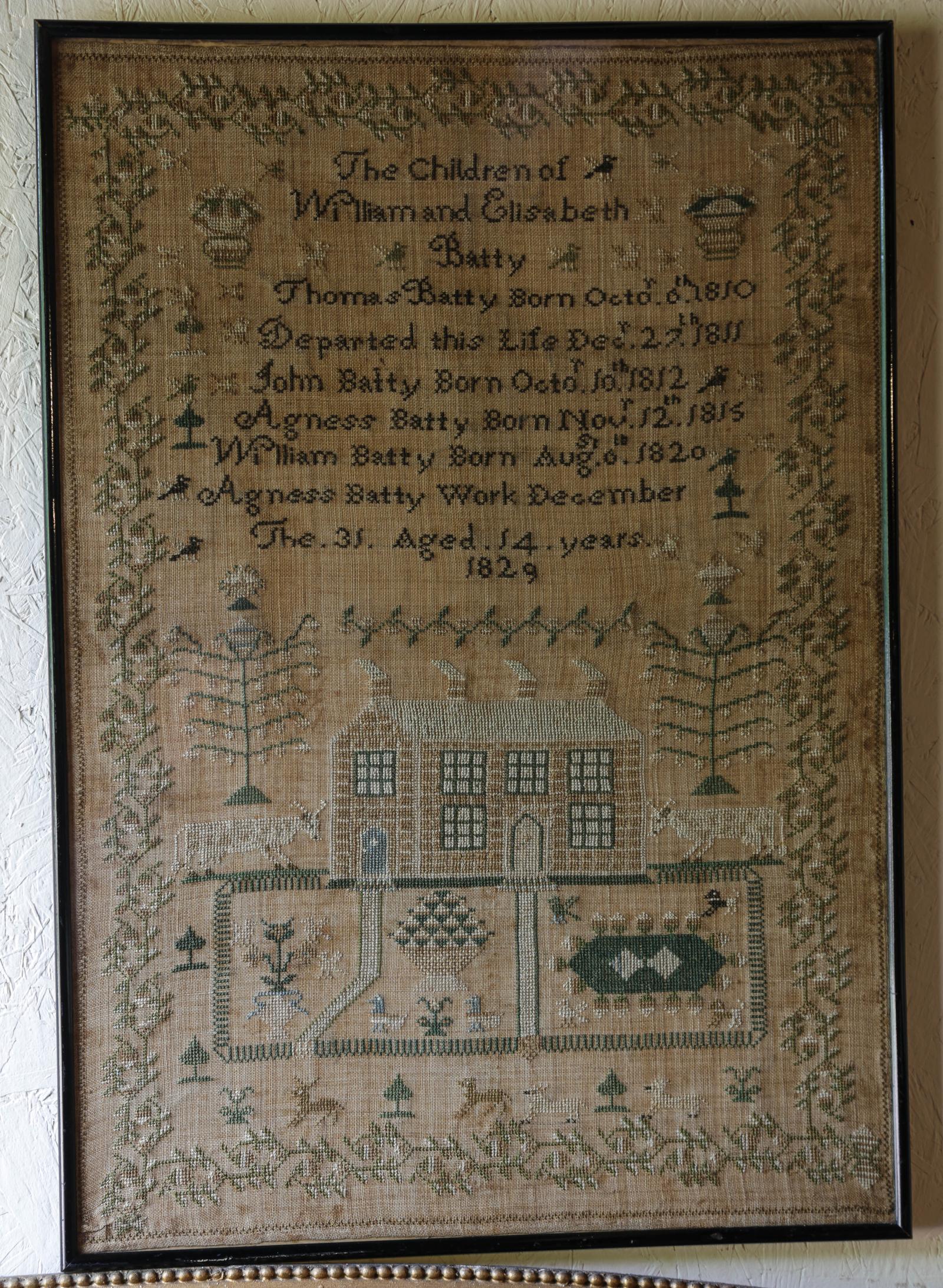 Good Interesting  Sampler of the Batty Family by Agness Batty 1829 (1 of 7)