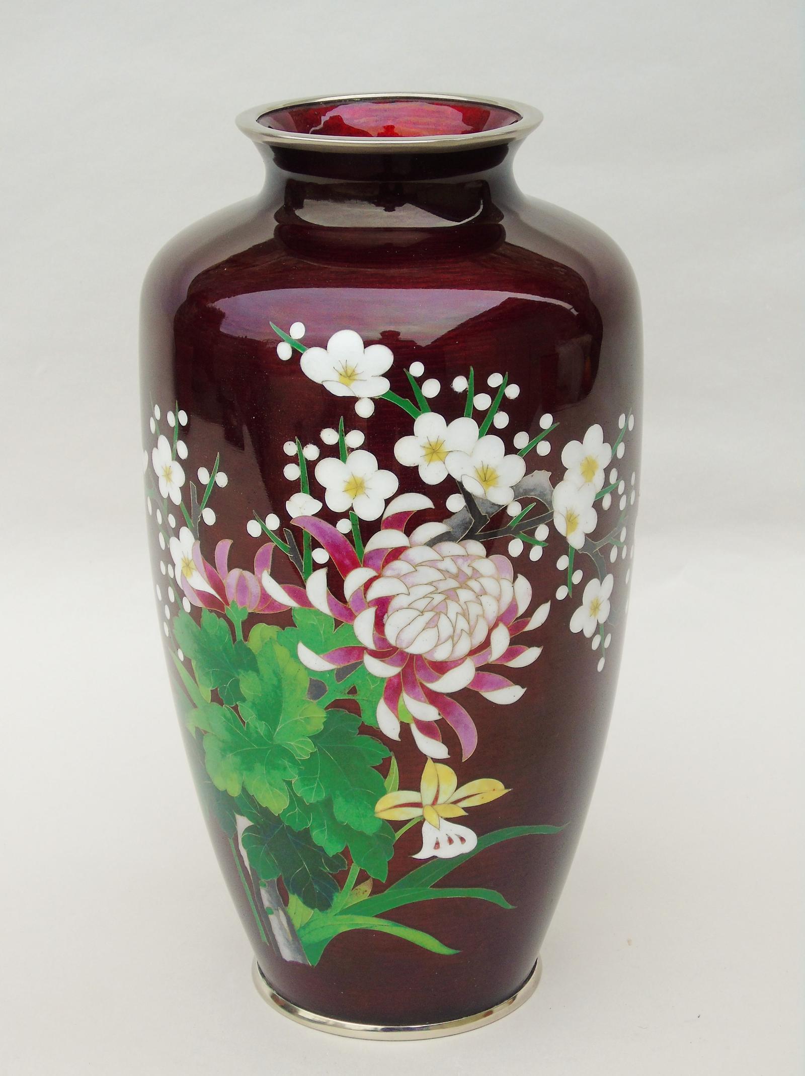Good Large Akasuke Ginbari Cloisonne Vase