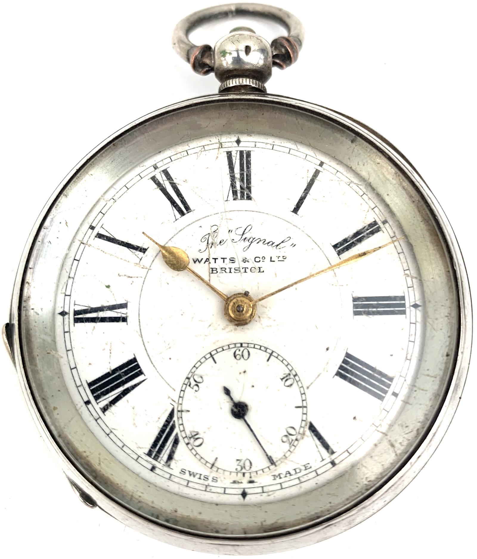 Good Large Antique English Silver Fusee Pocket Watch Signal Watch Bristol