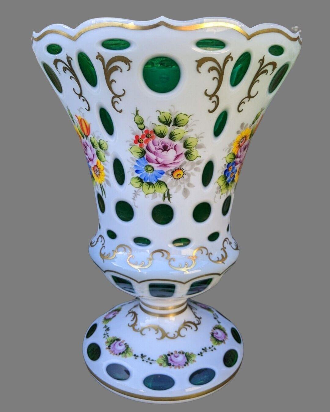 Good Large Bohemian Emerald Green Overlay Glass Vase