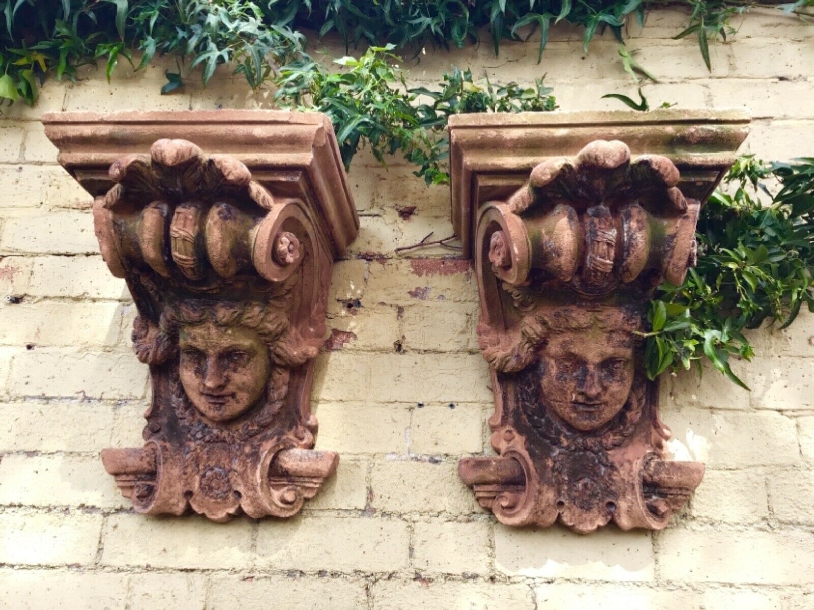 Good Large Pair of 19th Century Terracotta Corbels (1 of 1)