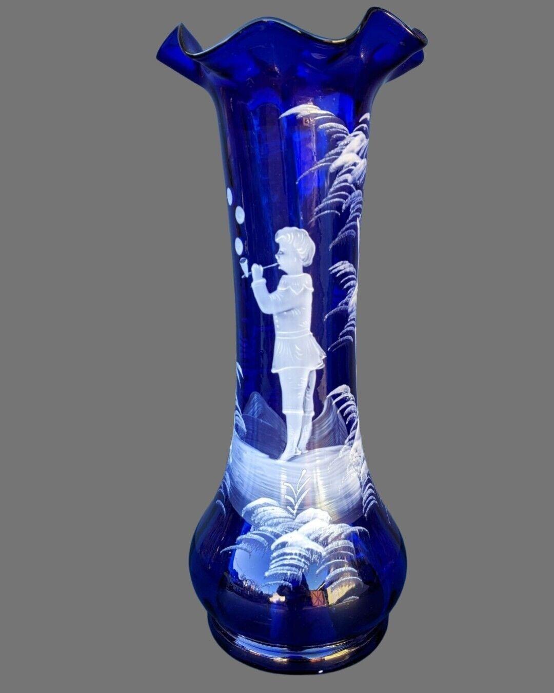 Good Large Victorian Blue Mary Gregory Vase