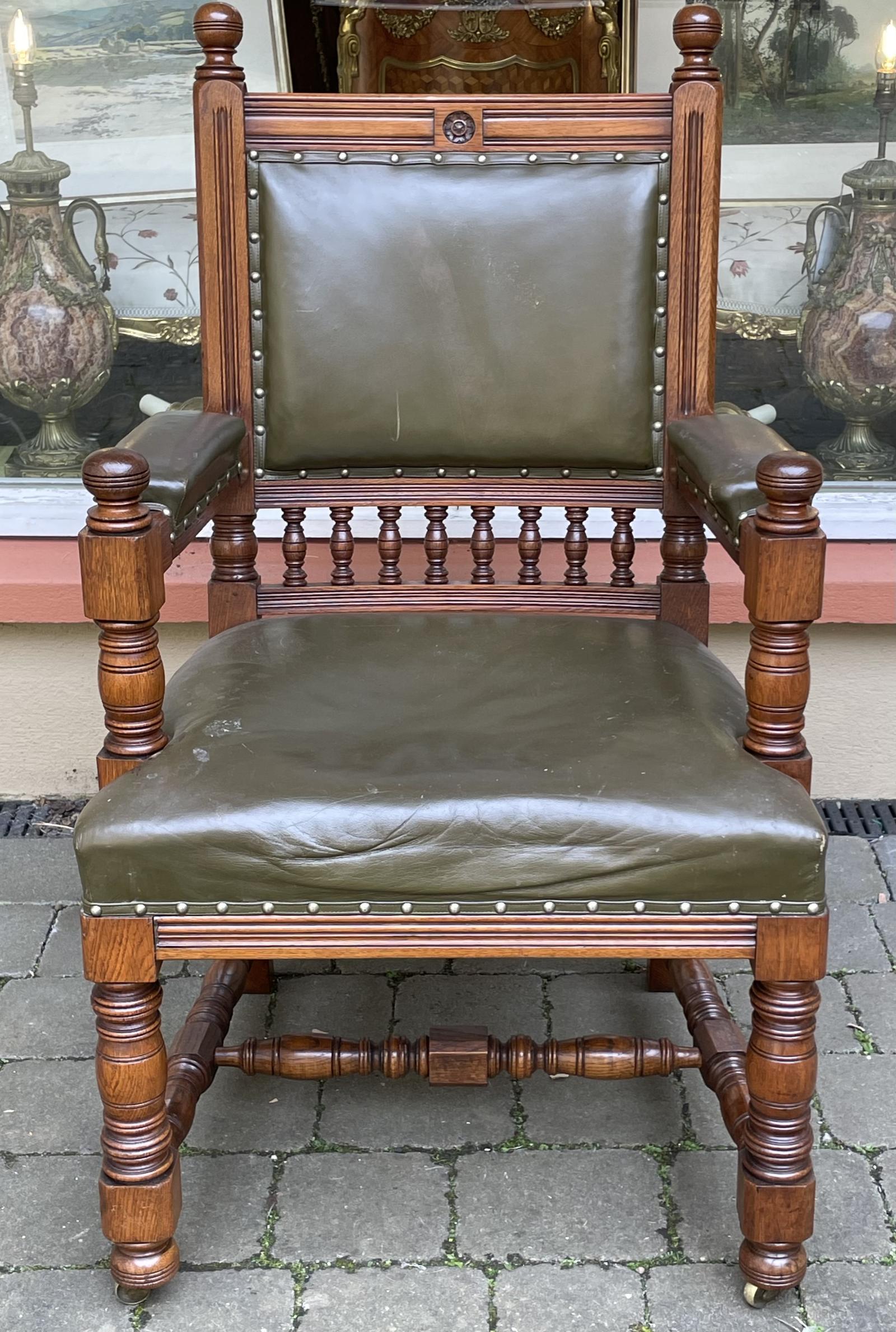Good Late Victorian Oak & Leather Library Chair (1 of 8)