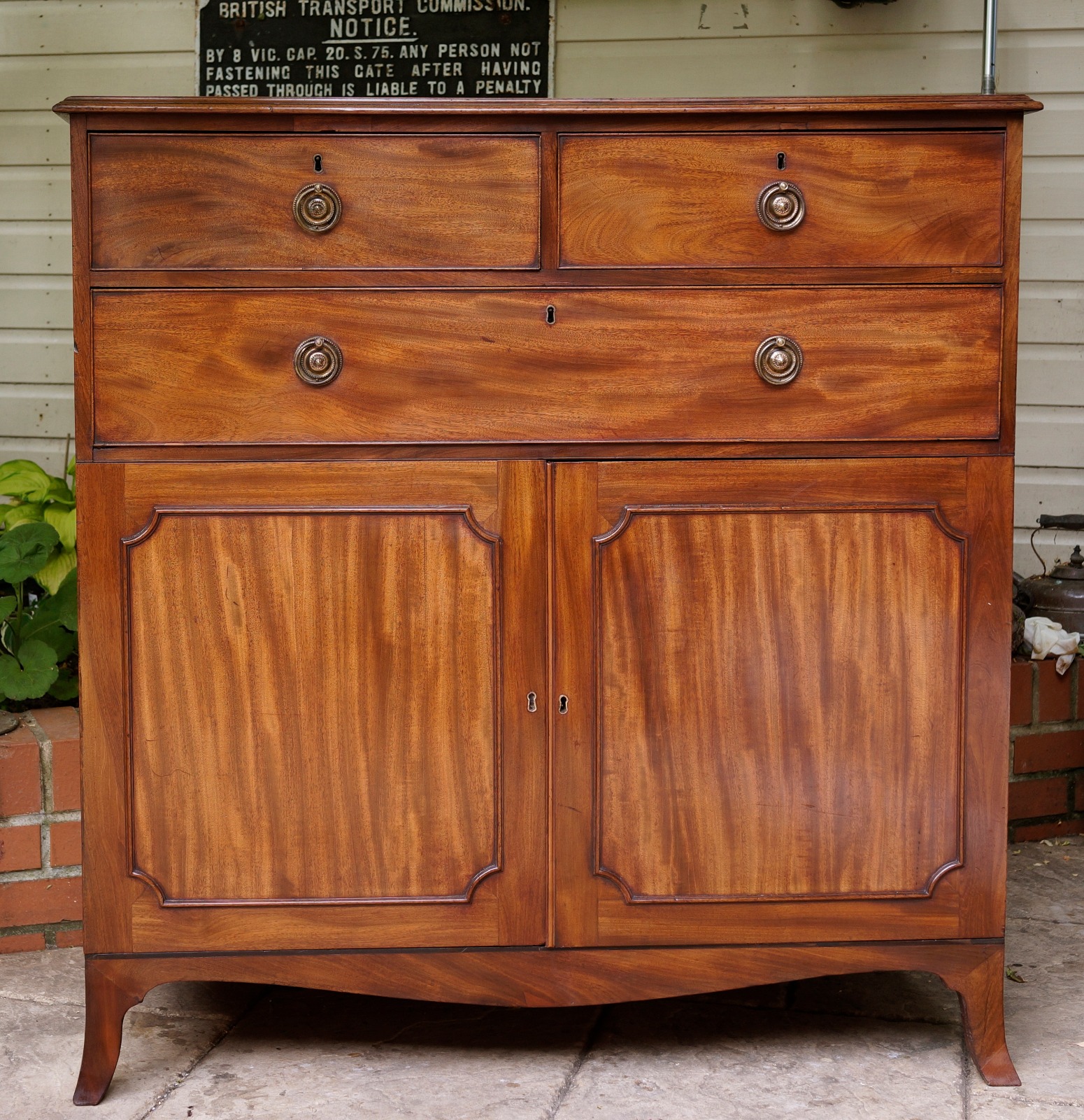 Good Mahogany Chest of Drawers with Cupboard Revealing Sliding Trays Supported On Splayfeet C.1810