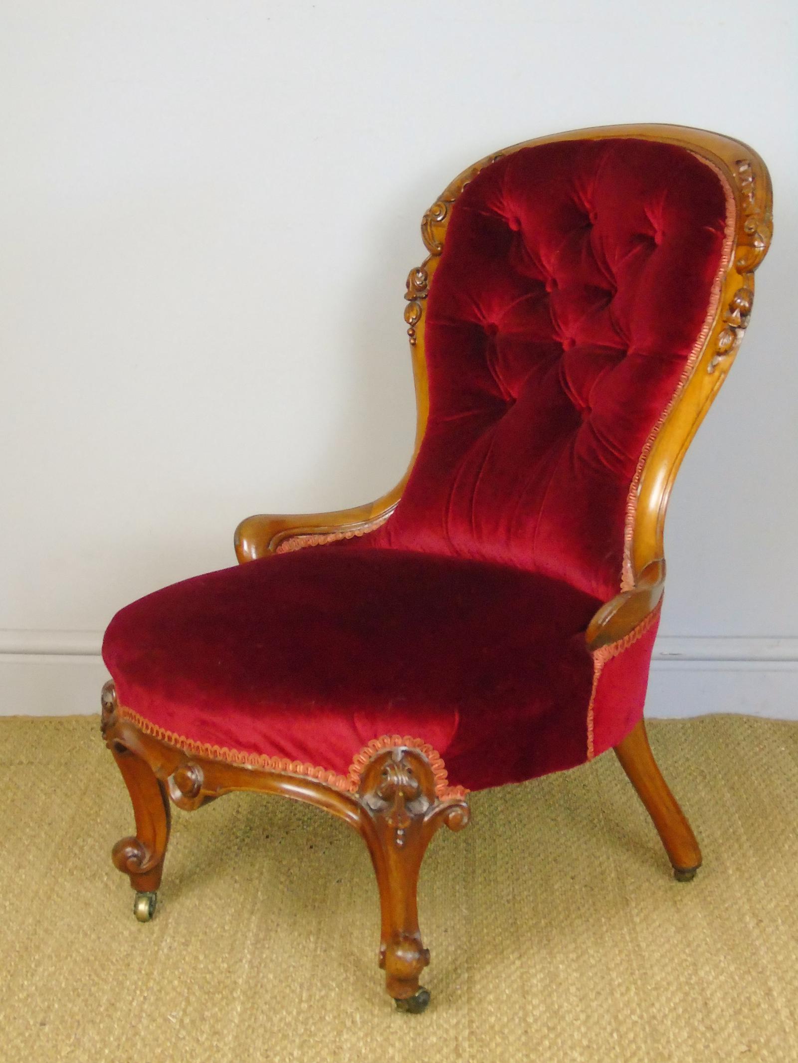Good Mahogany Nursing Chair Red Velvet 19th Century (1 of 10)