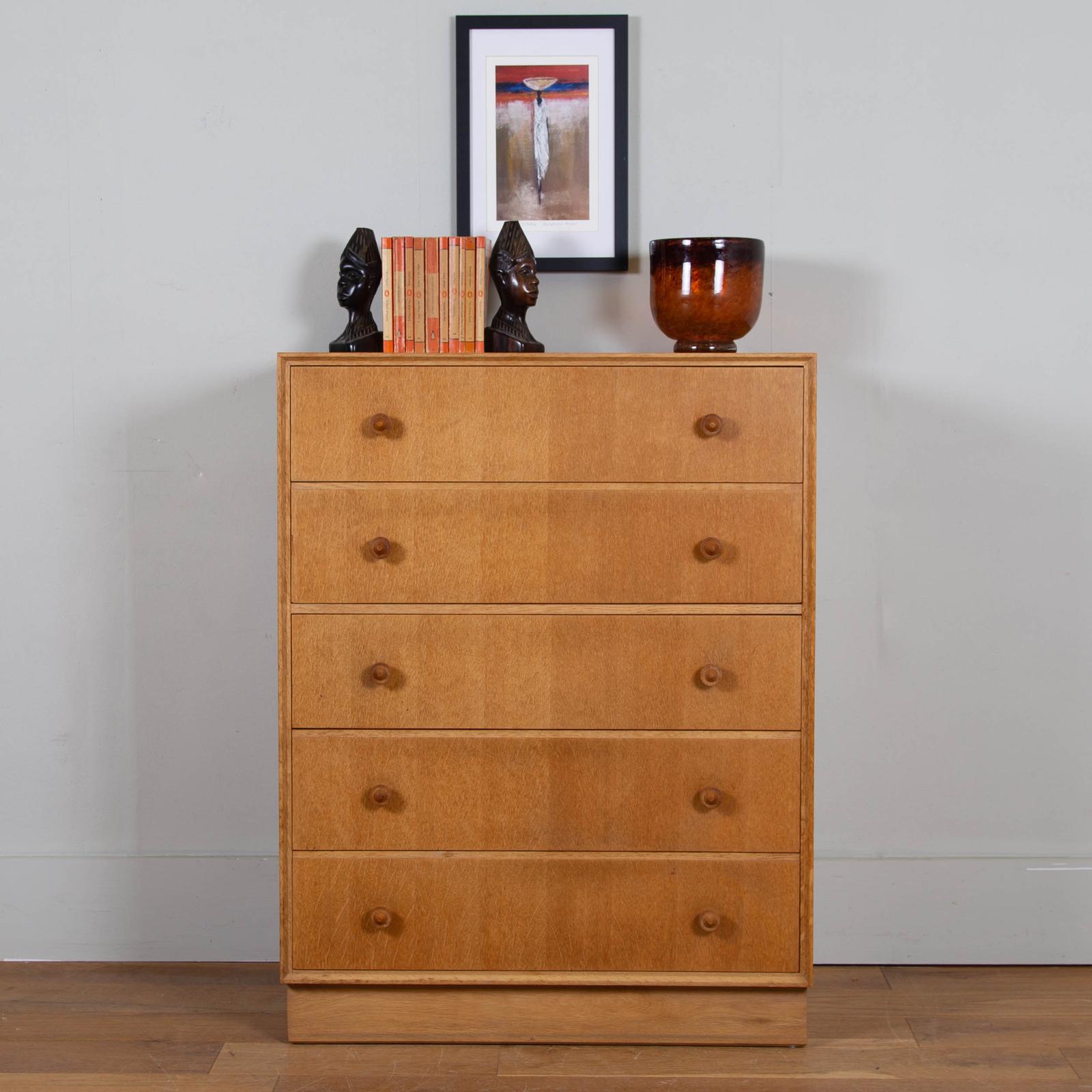 Good Mid Century Oak Chest of 5 Drawers