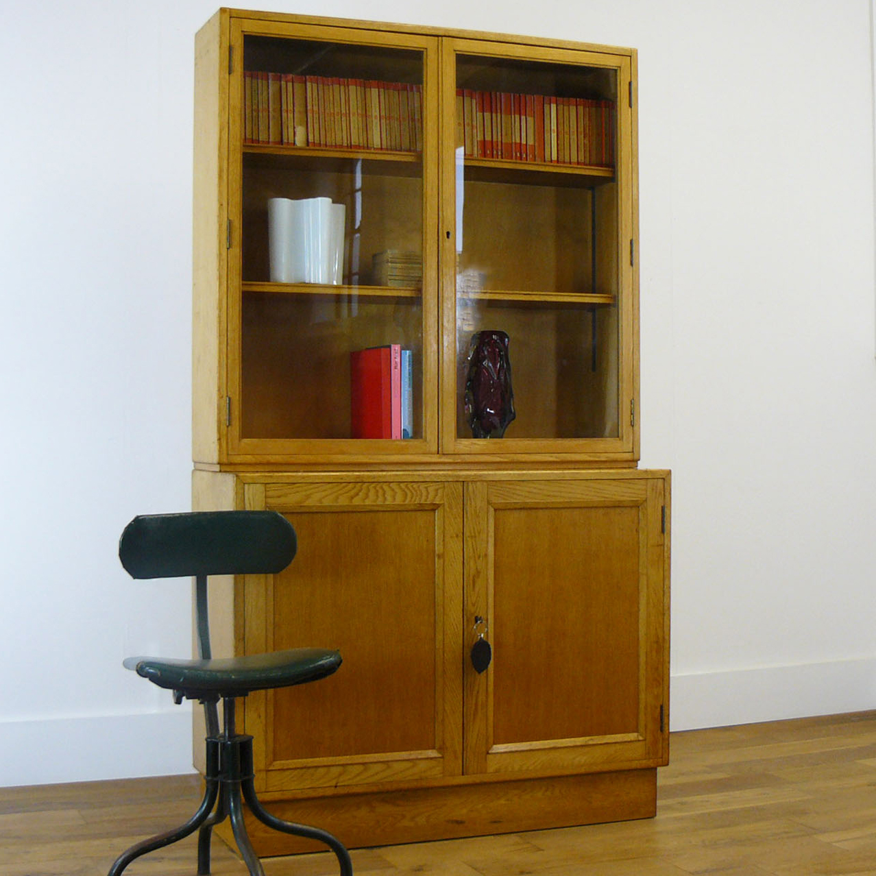 Good Mid-Century Vintage Oak School Glazed Cabinet Bookcase