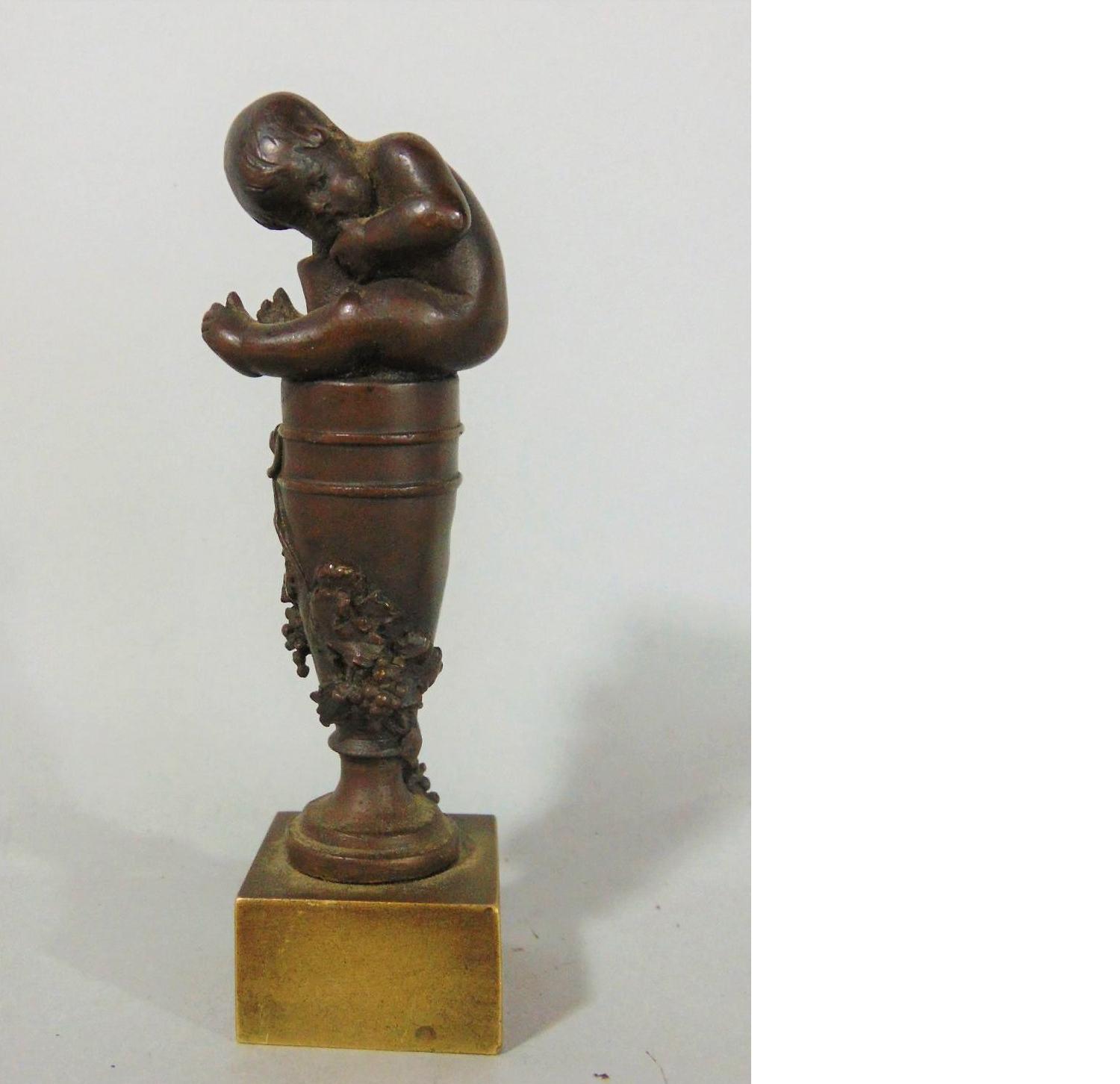 Good Novelty Bronze Figural Desk Seal Child Sat on Wine Ewer - 19th Century
