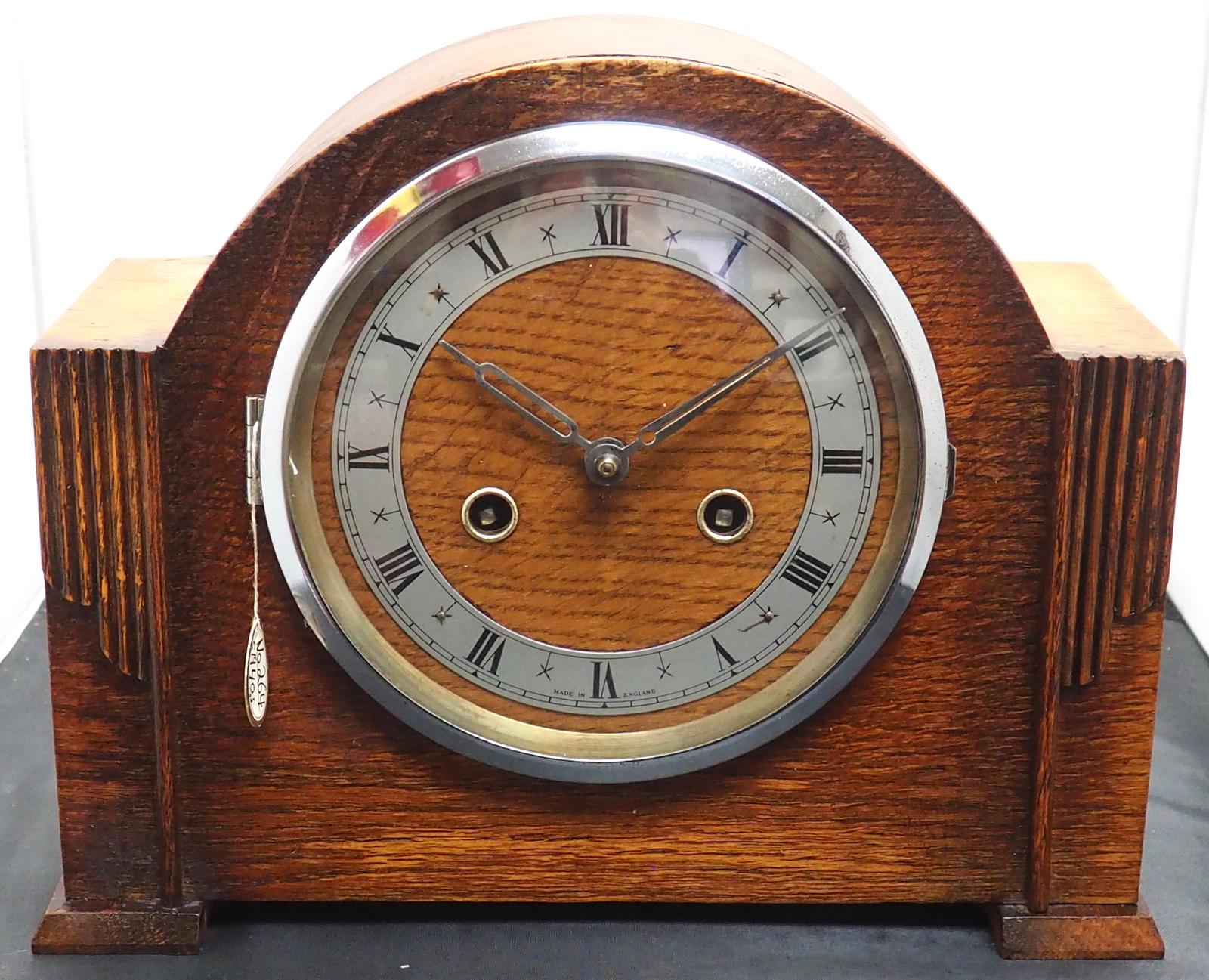 Good Oak Antique Art Deco 8 Day Striking Mantel Clock by Haller