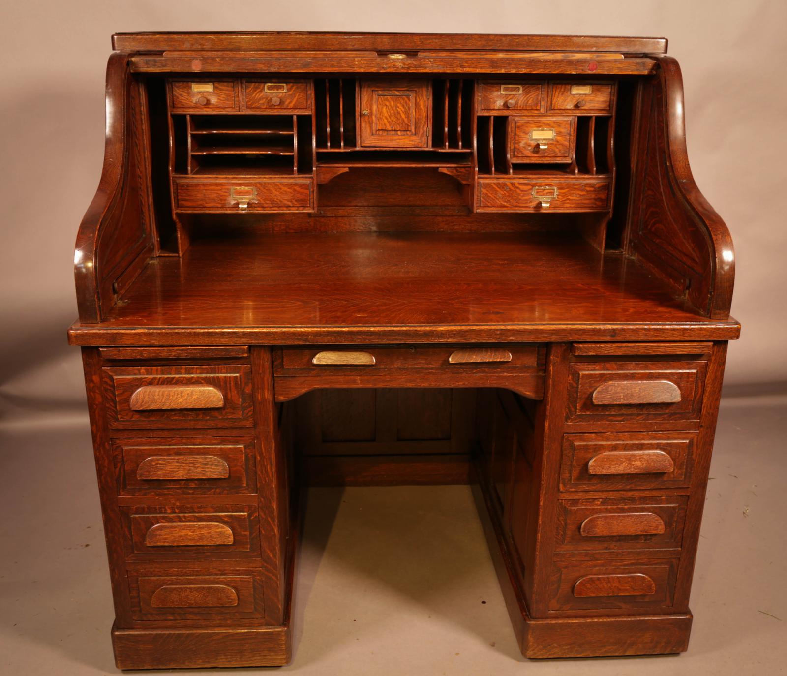 REF: A good Oak Roll Top Desk by Maples London / LA340538