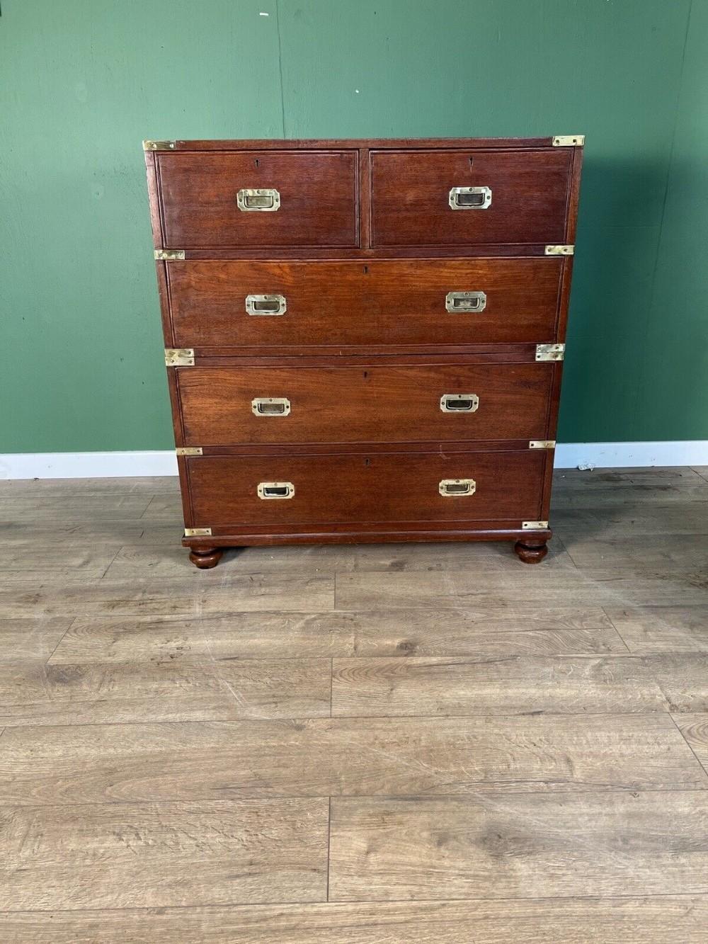 Good Original Teak Victorian Campaign Chest