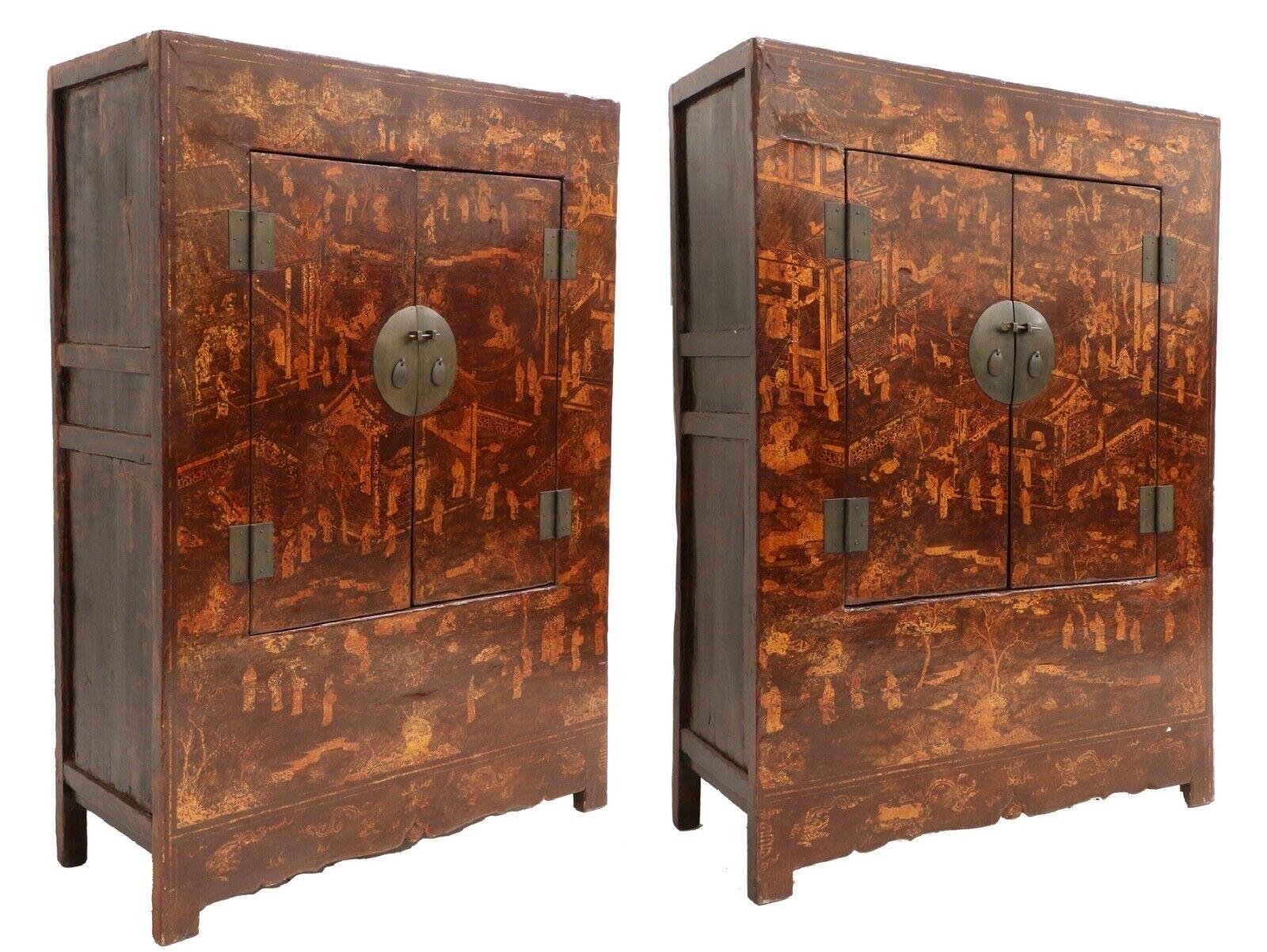 Good Pair of 19th Century Chinese Lacquer Marriage Cabinets / Wardrobes