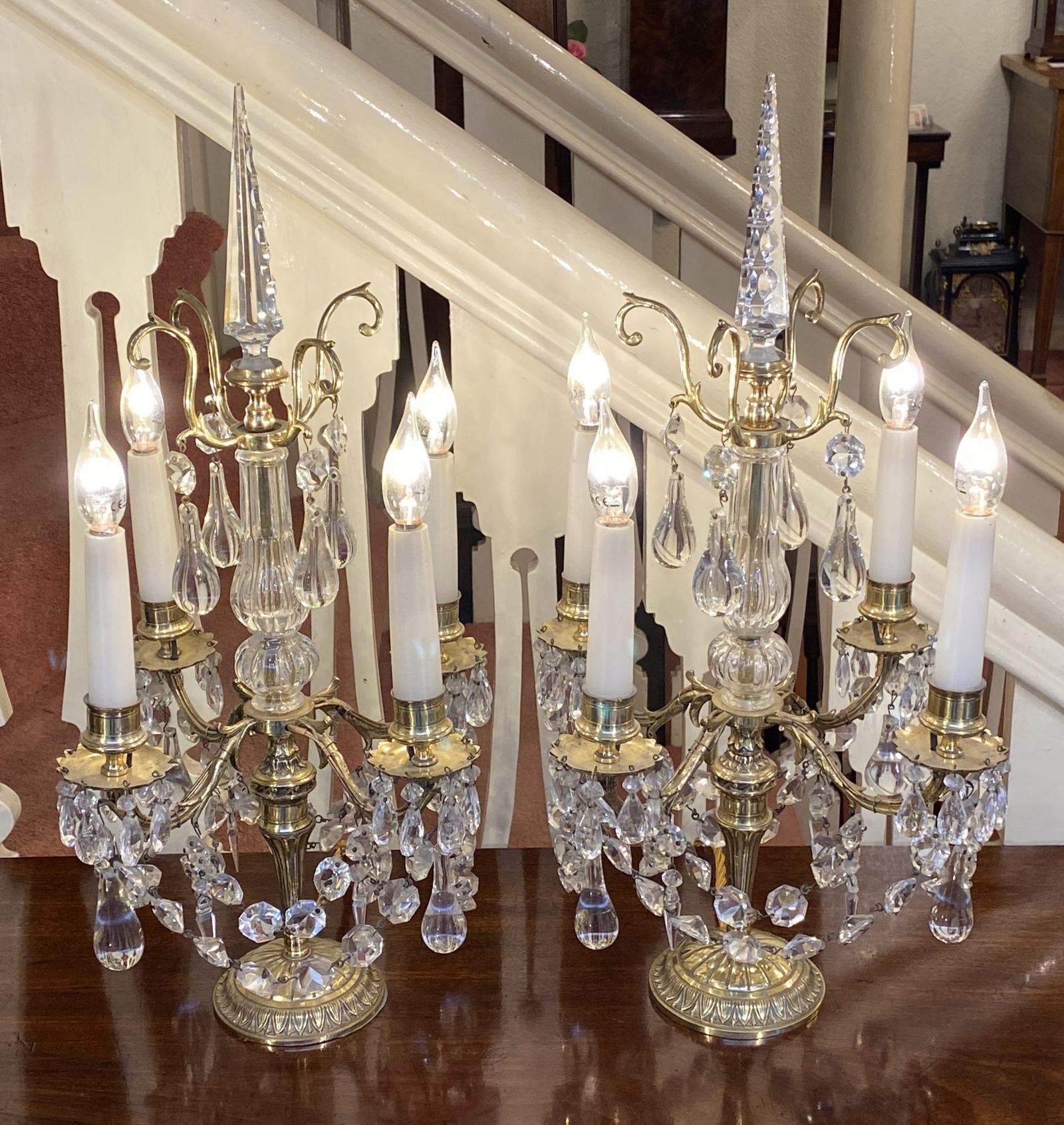 Good Pair of 19th Century Four-Branch Glass Table Lustres