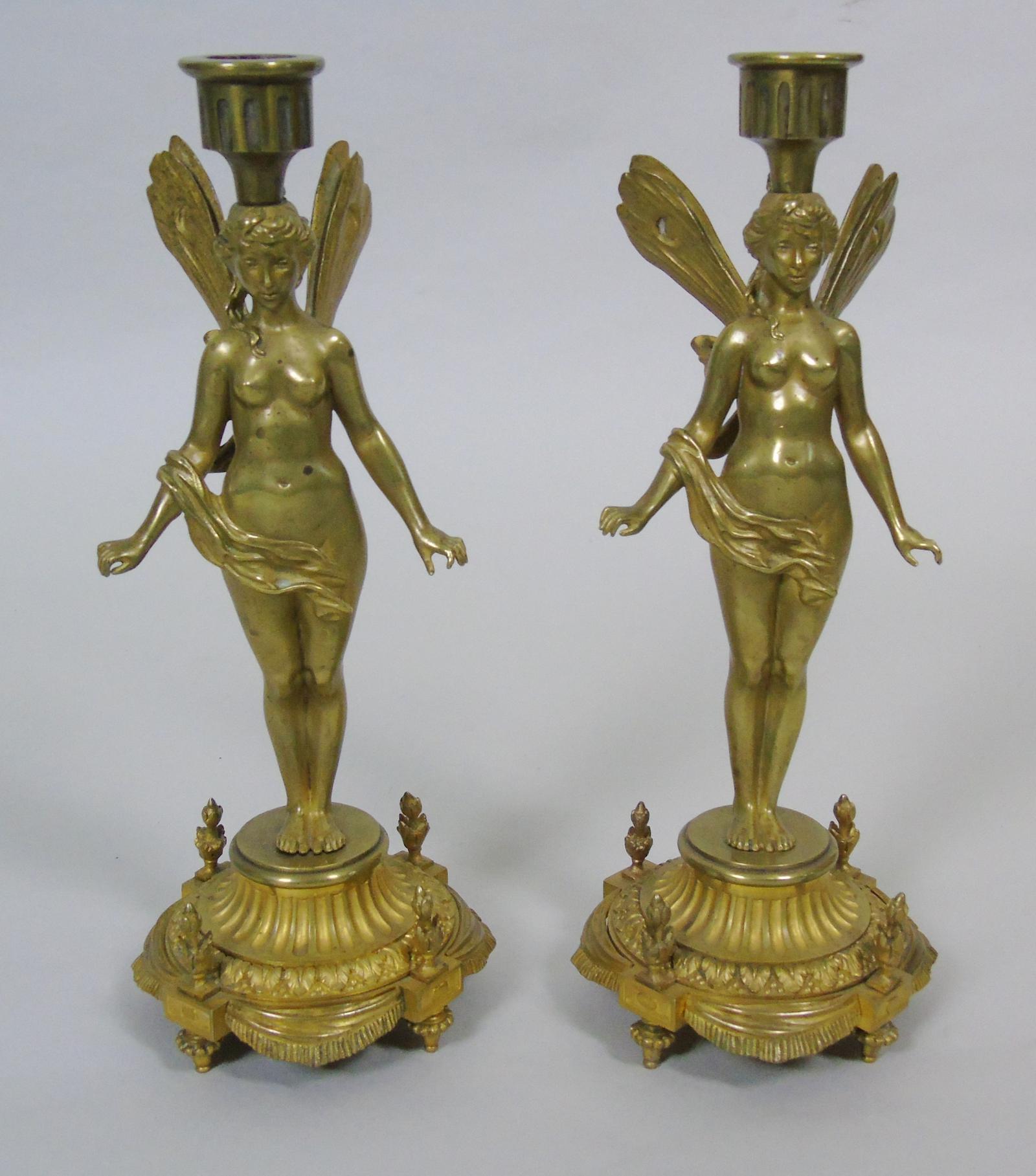 Good Pair of 19th Century French Gilt Bronze Winged Fairy Candlesticks