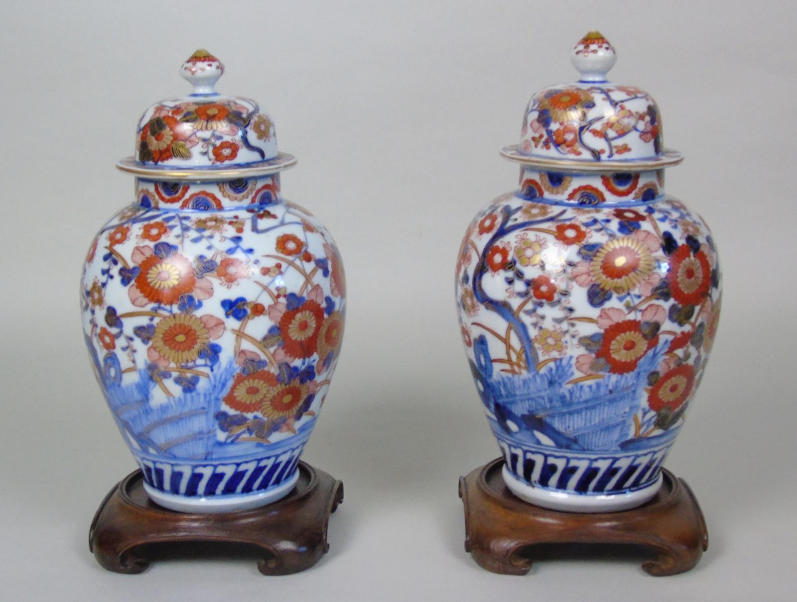 Good Pair of 19th Century Imari Porcelain Vases on Stands (1 of 10)
