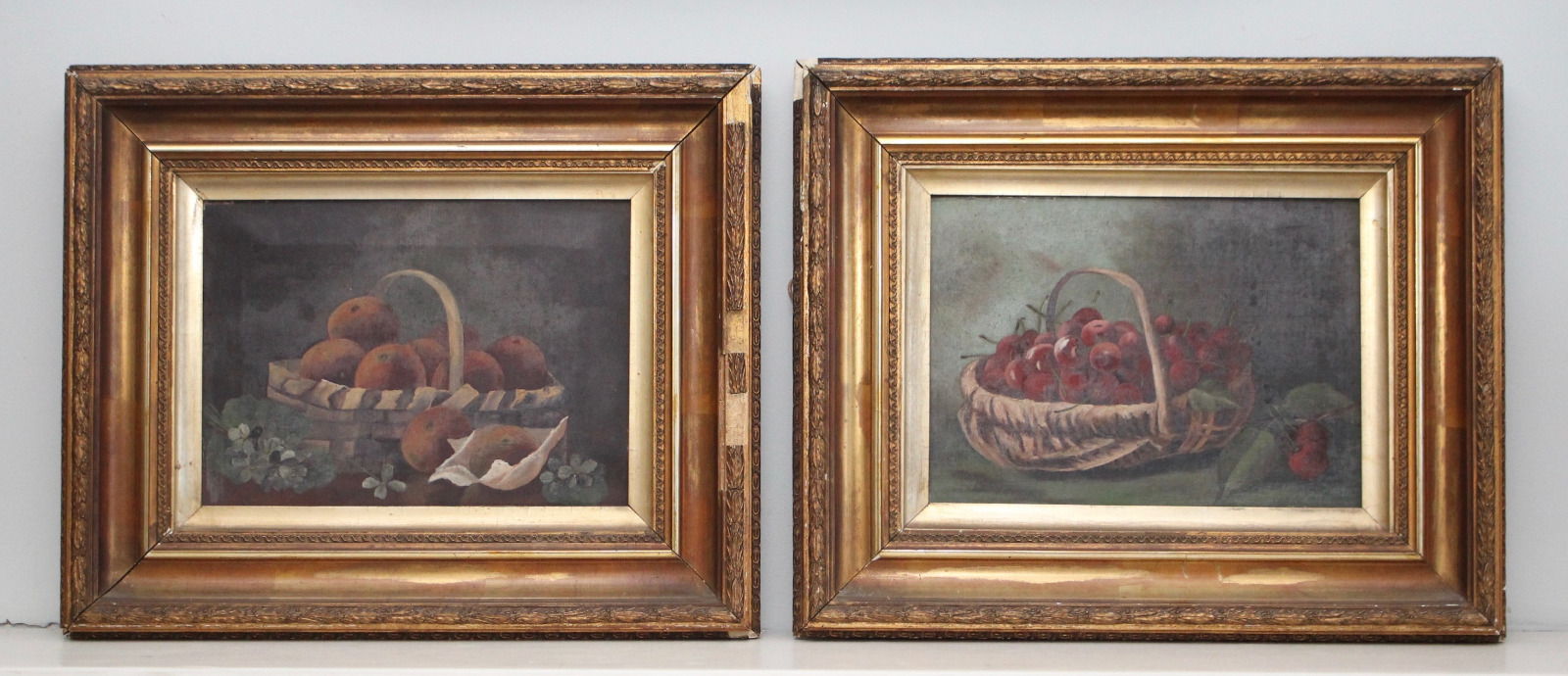 Good Pair of 19th Century Still Life Oil Paintings, Gilt Frames, Oranges & Cherries
