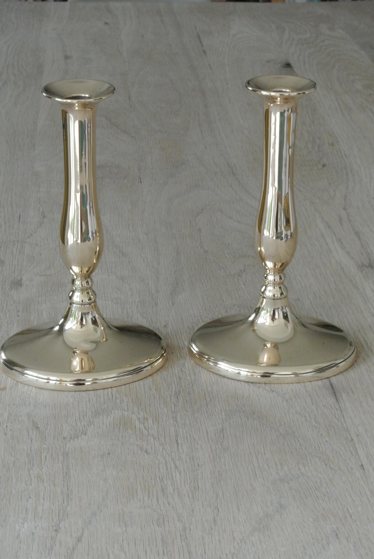 Good Pair of 9 Inch Georgian Red Brass Candlesticks c.1795