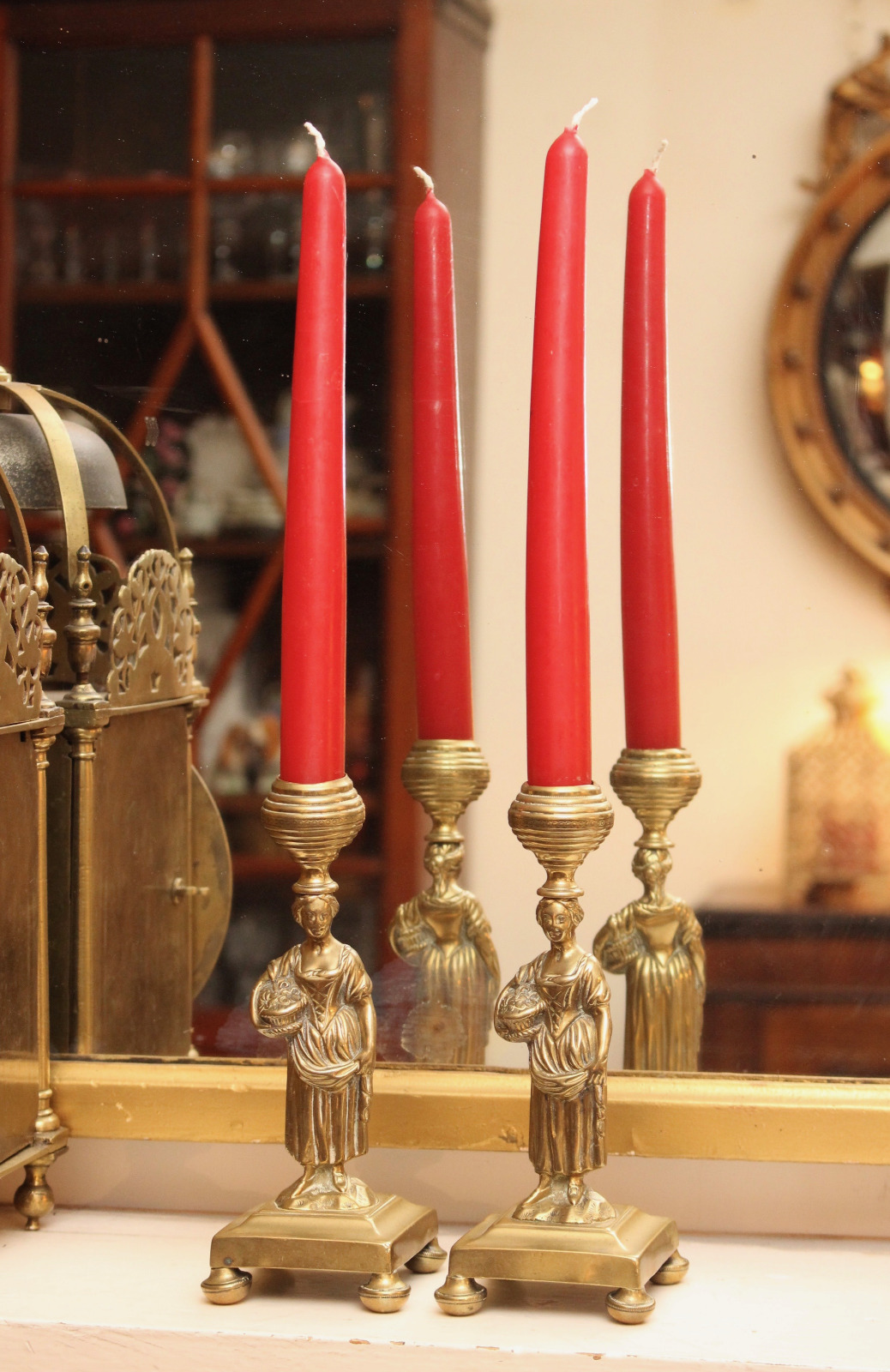 Good Pair of Antique 19th Century Caryatid Candlesticks, Flower Basket Figures