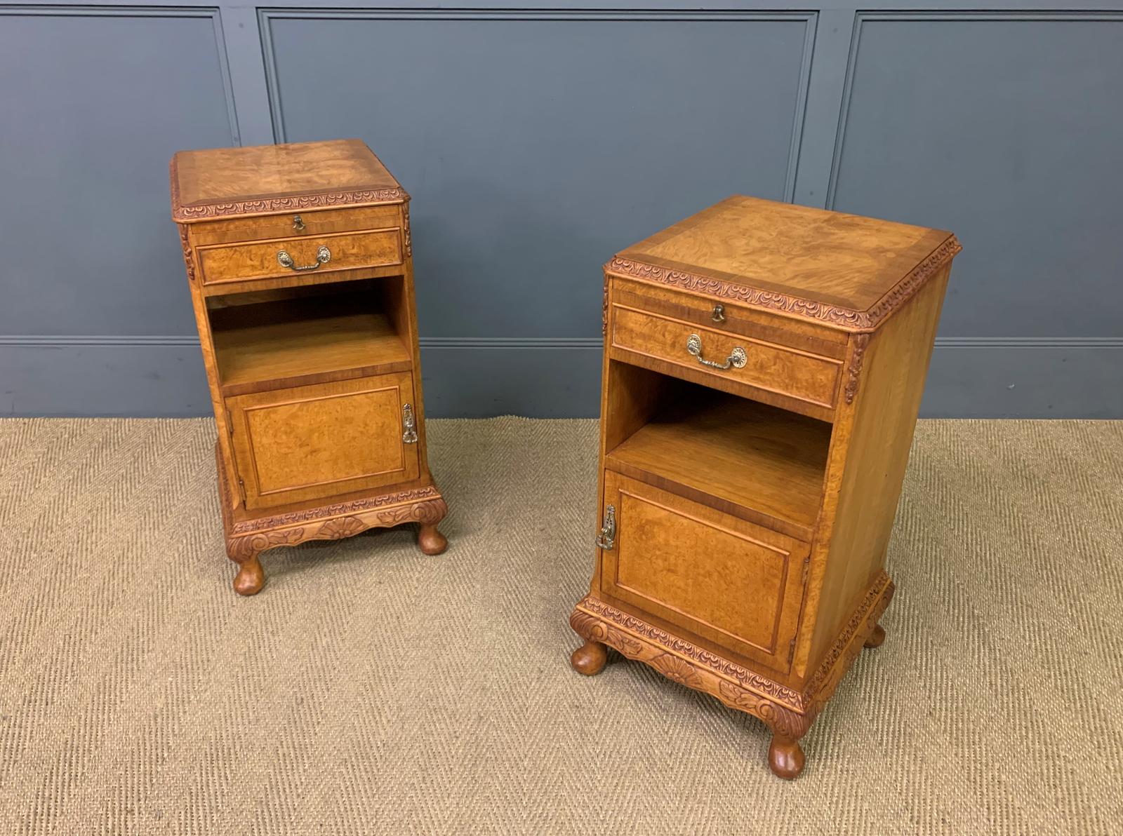 Good Pair of Burr Walnut Queen Anne Style Bedside Cupboards