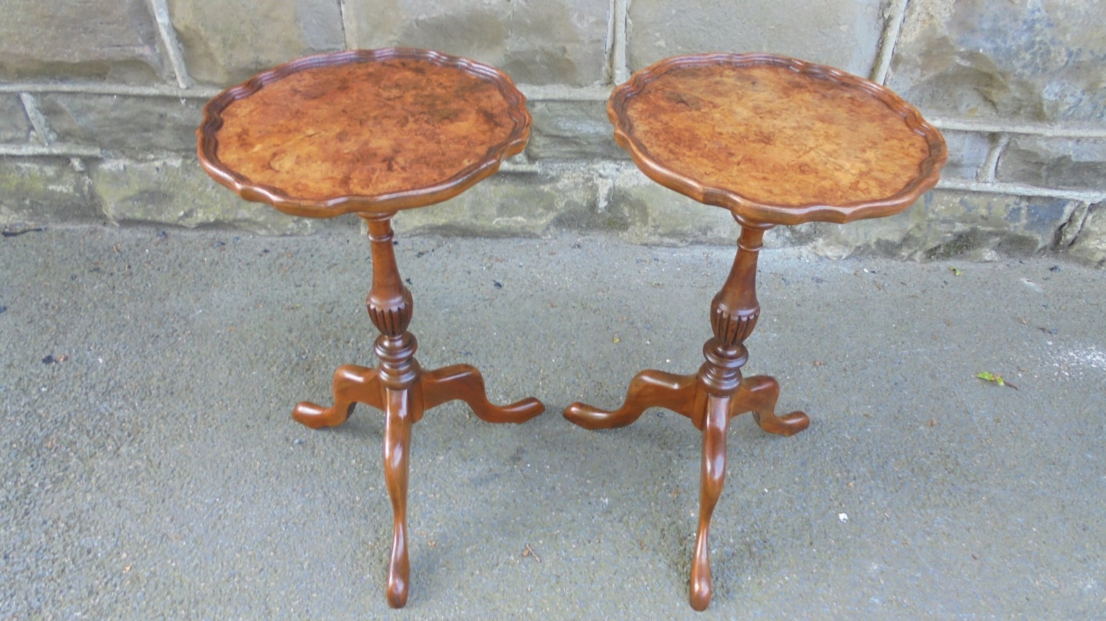 Good Pair of Burr Walnut Tripod Wine Tables c.1920