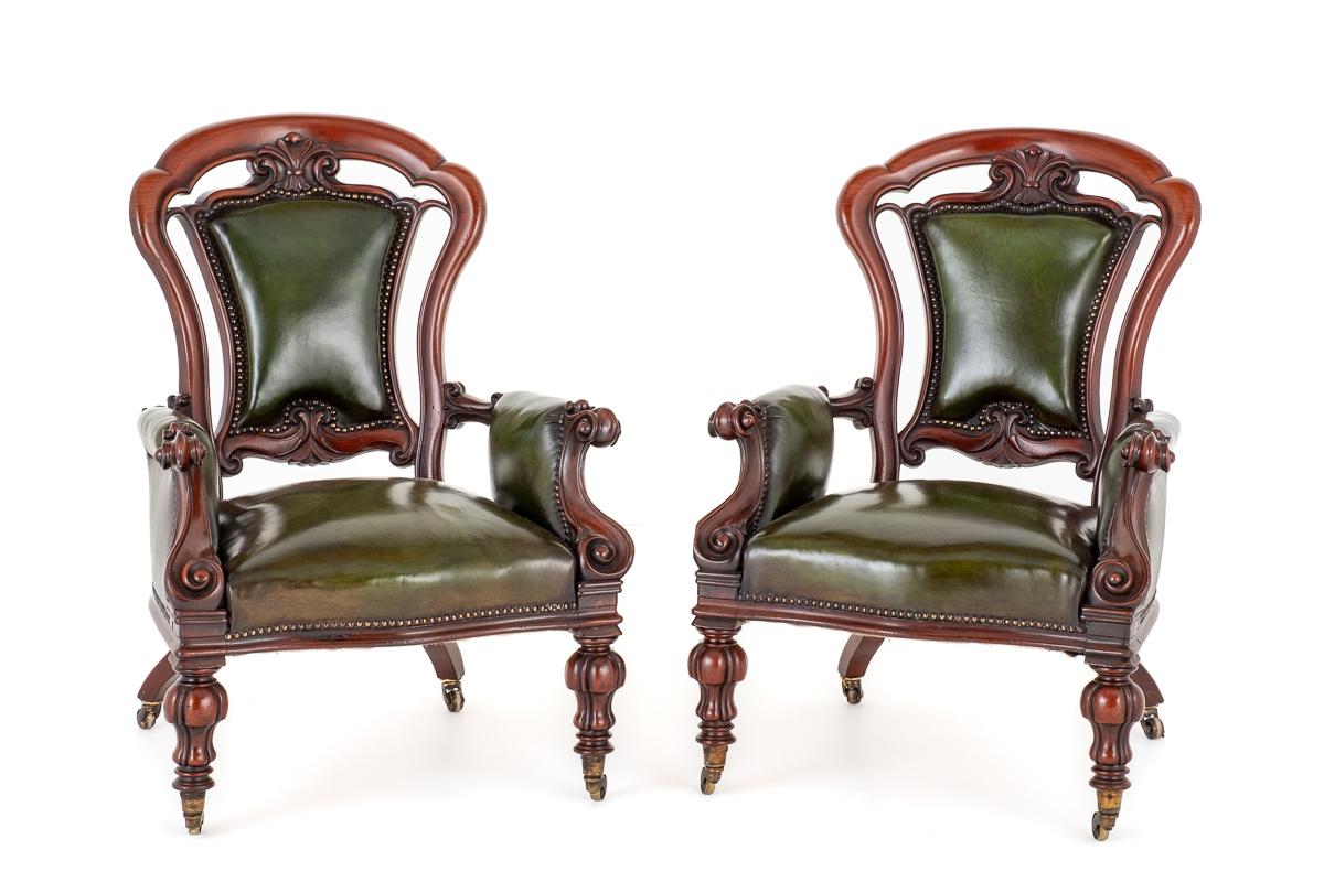 Good Pair of Early Victorian Mahogany & Leather Open Armchairs