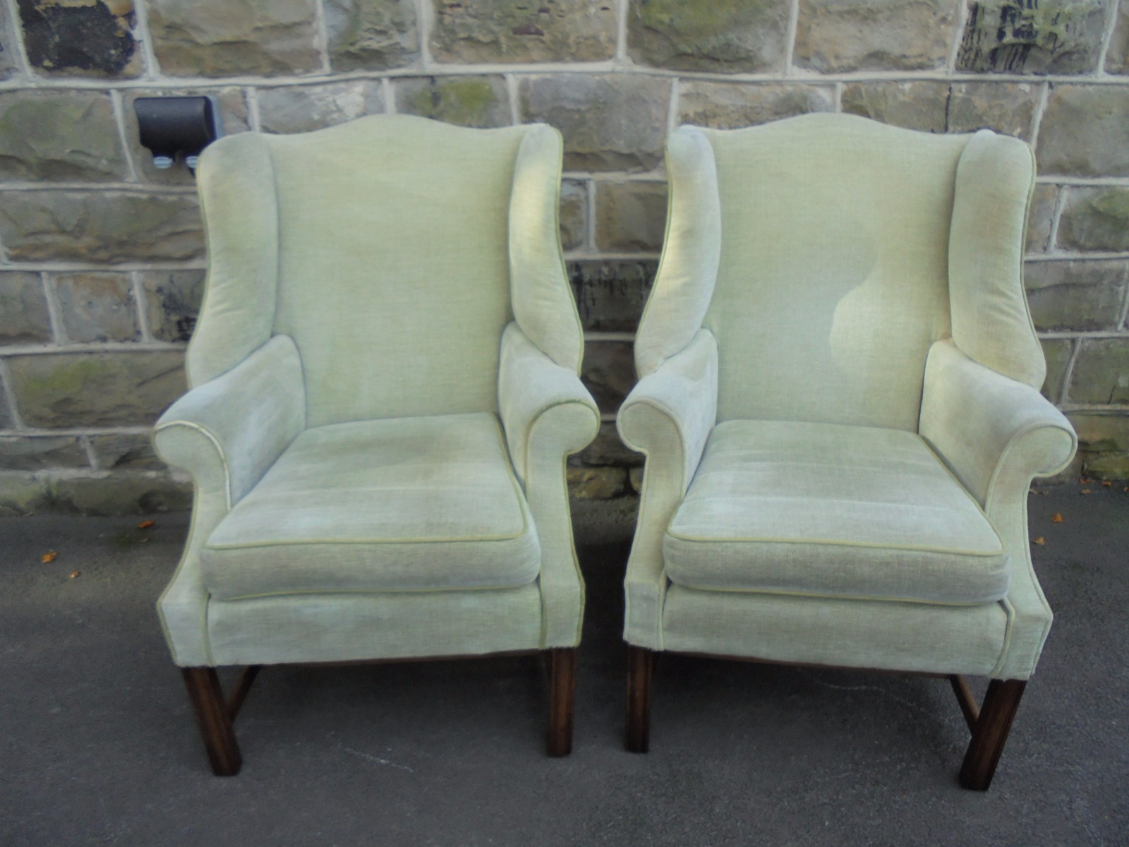 Good Pair of English Upholstered Wing Armchairs c.1910