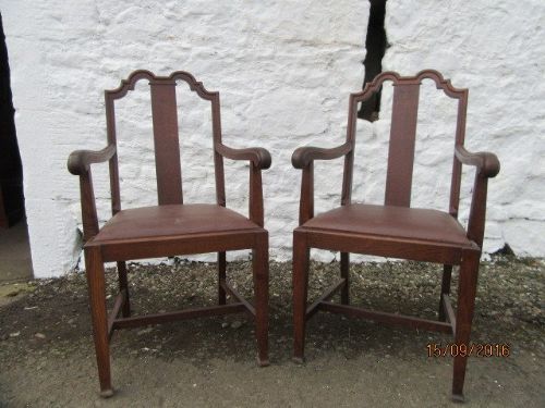 Good Pair of Late Victorian, Queen Anne Revival Oak Carver Chairs