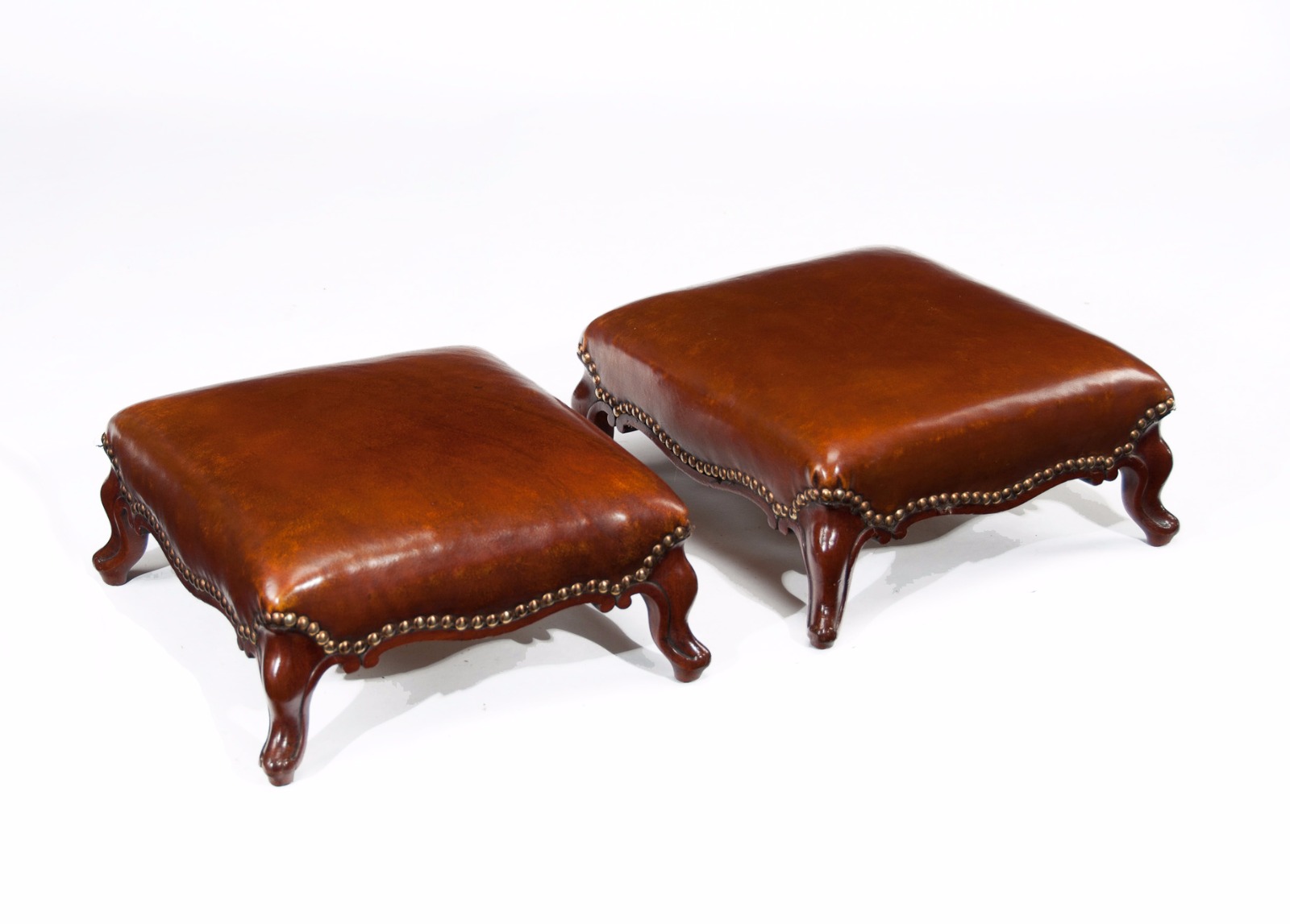 Good Pair of Leather Upholstered Victorian Mahogany Footstools
