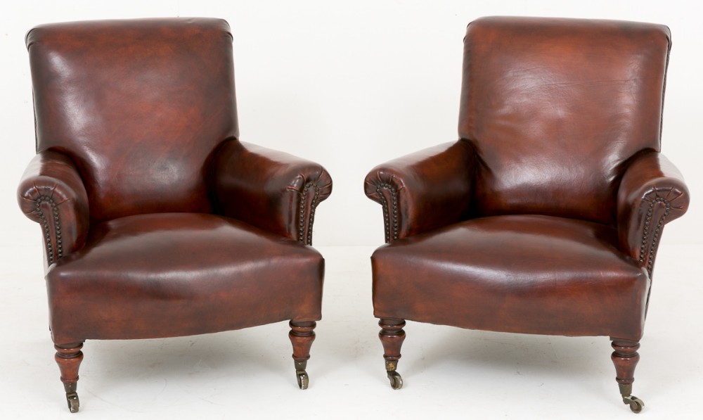 Good Pair of Leather Victorian Library Chairs (1 of 1)