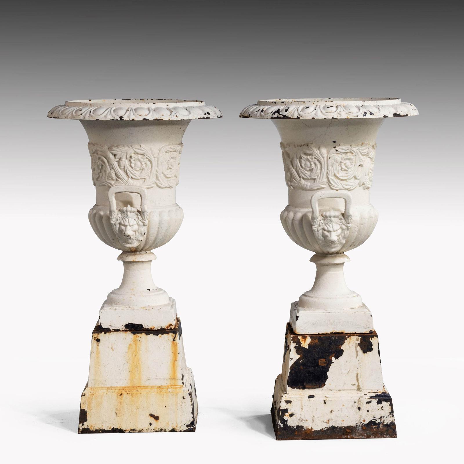 Good Pair of Mid 19th Century Cast Iron Campana Urns